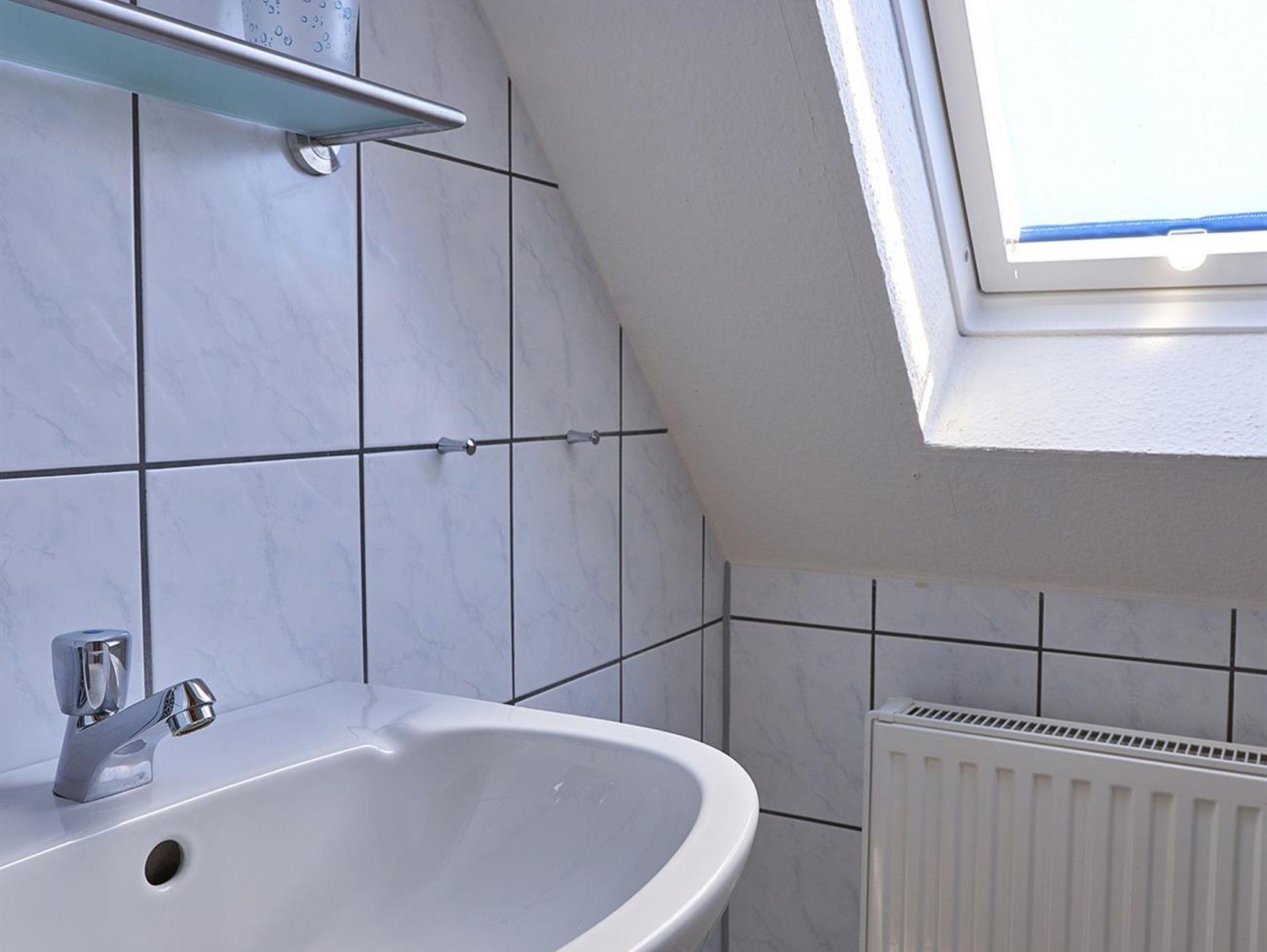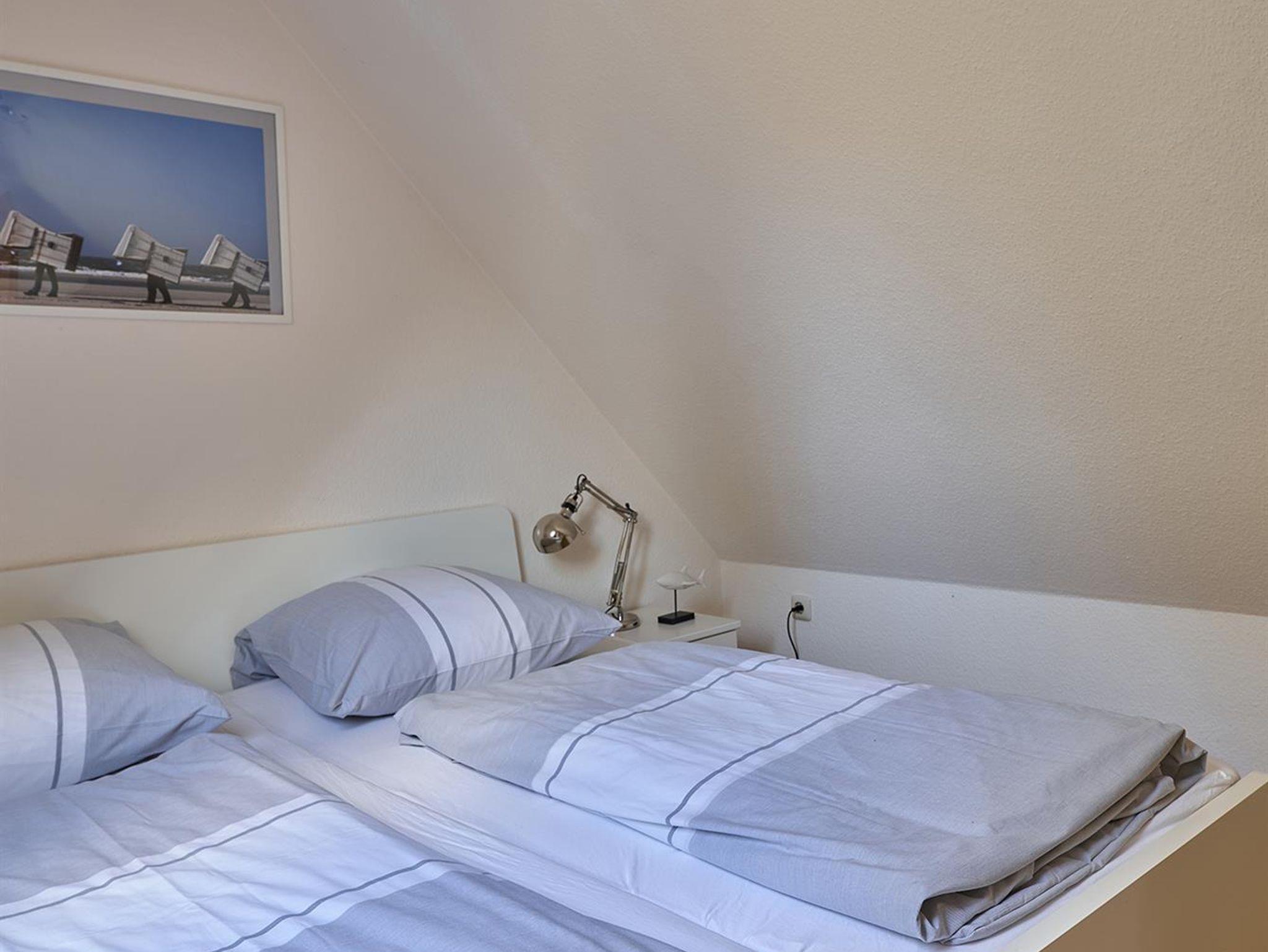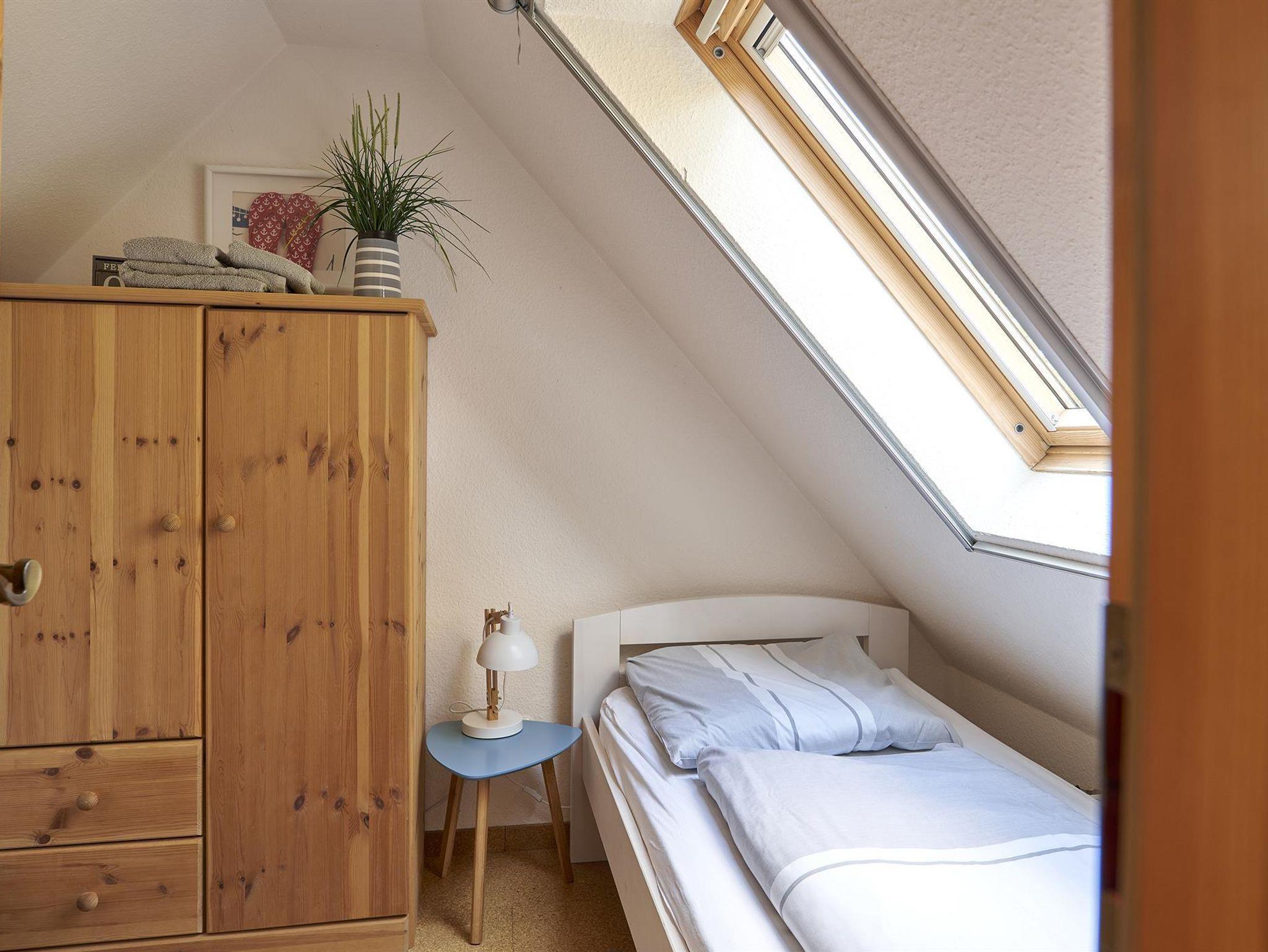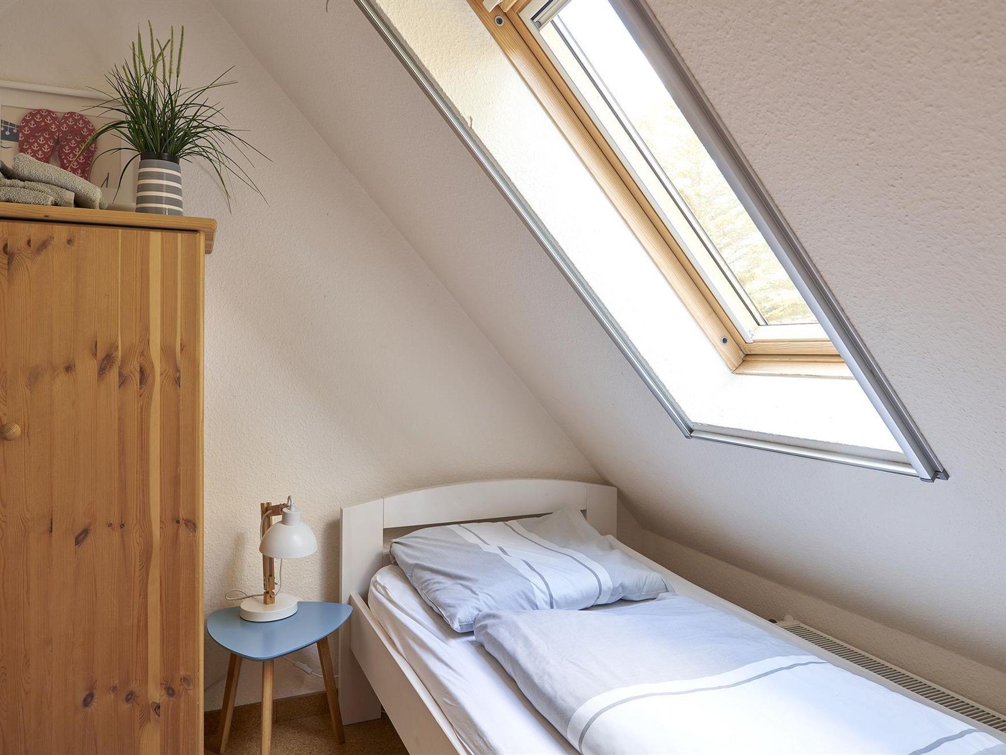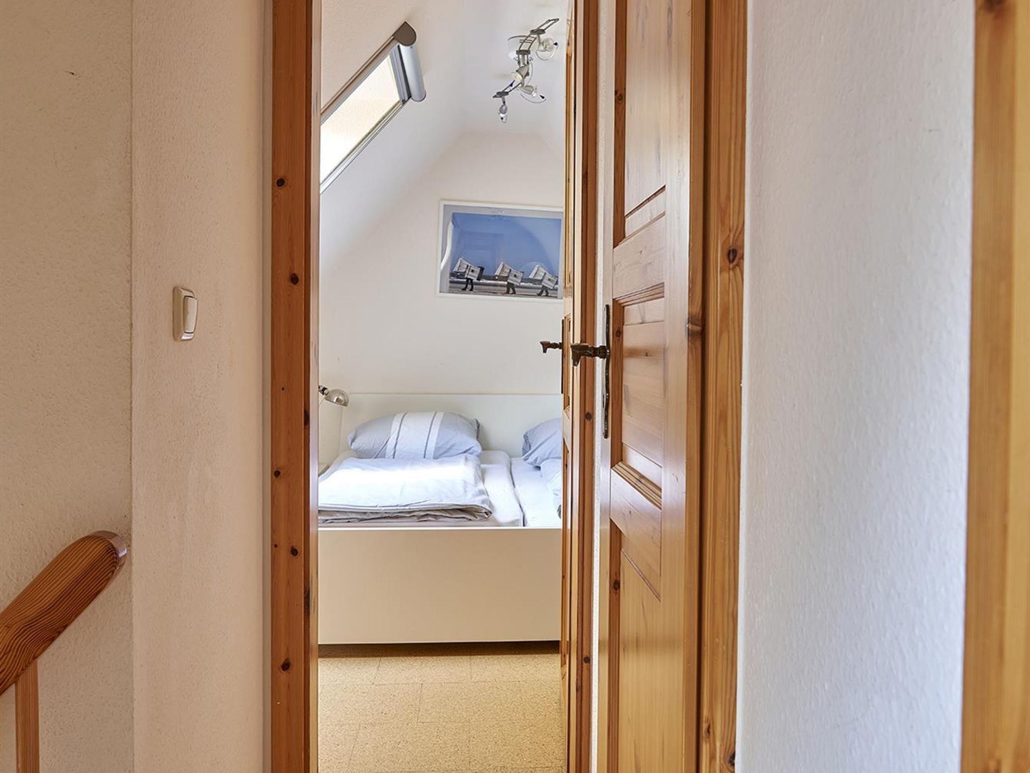 Über die Innentreppe geht es zu 2 Schlafzimmern (1 Doppelbett 1,80 x 2,00 m, 2 Einzelbetten 0,90 x 2,00 m), ein Extra-WC zwischen den Schlafzimmern rundet den Komfort ab.