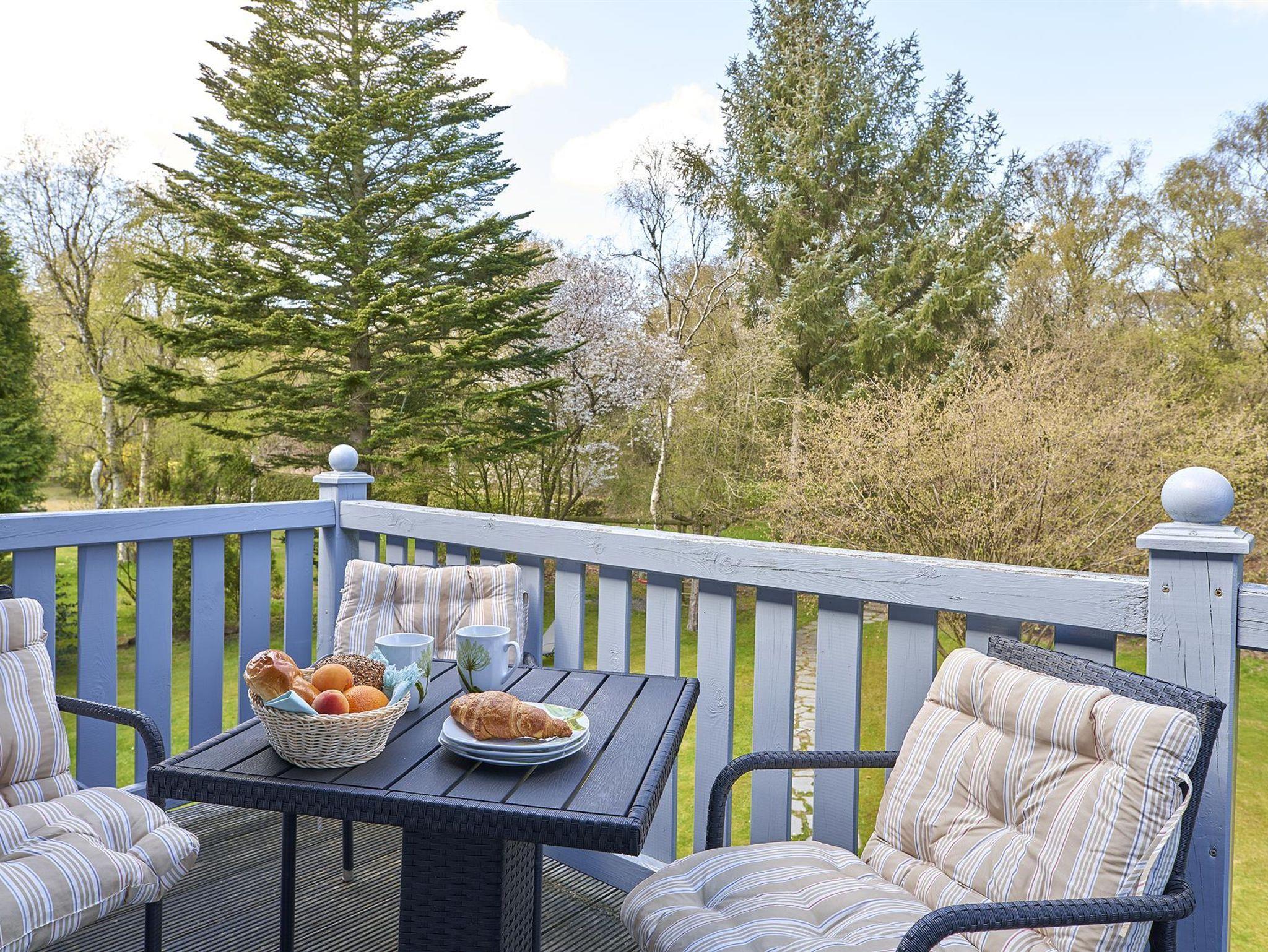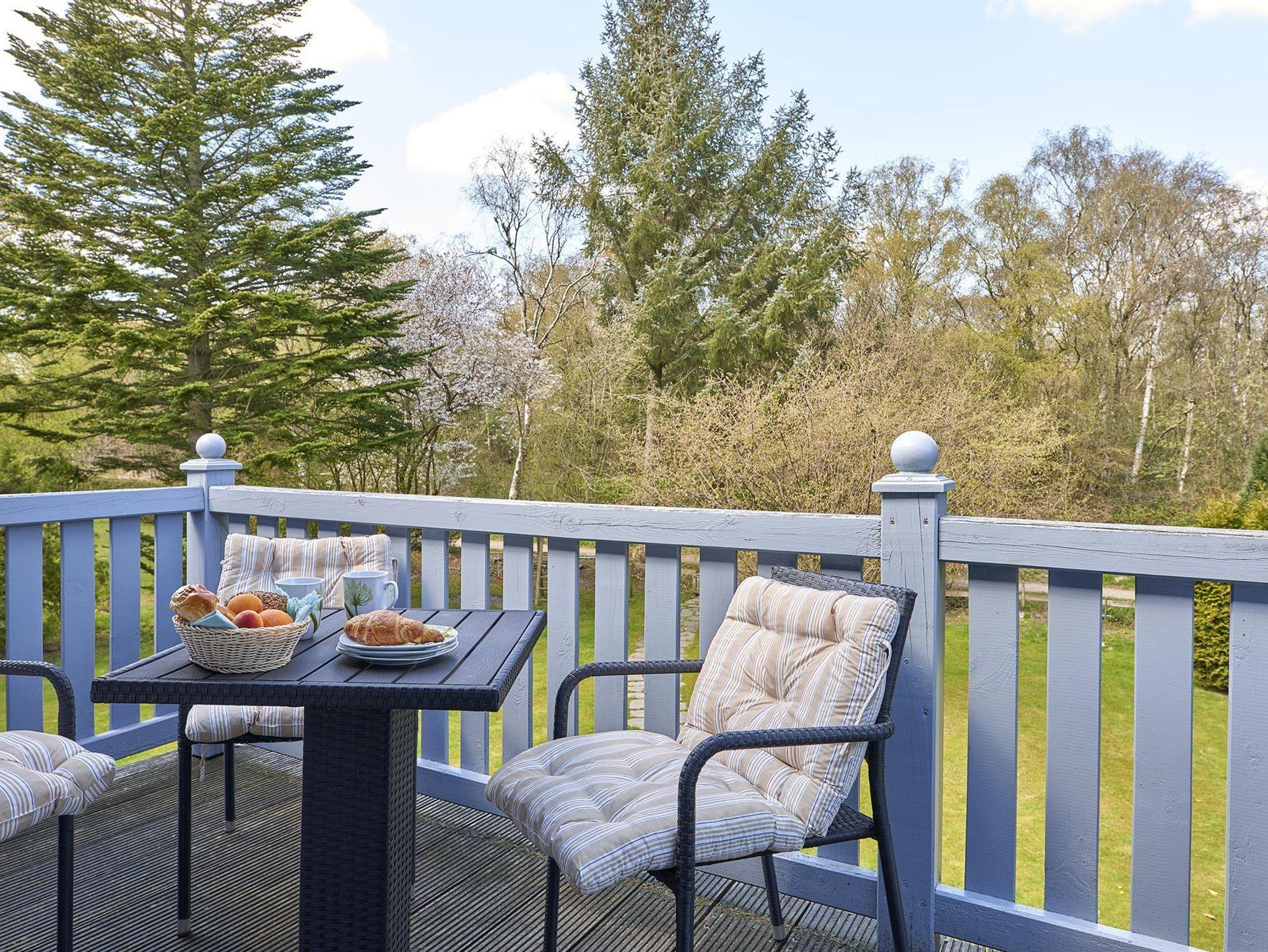 Ein Westbalkon mit 2 Tischen und 2 Stühlen zur Waldseite rundet das Angebot ab.