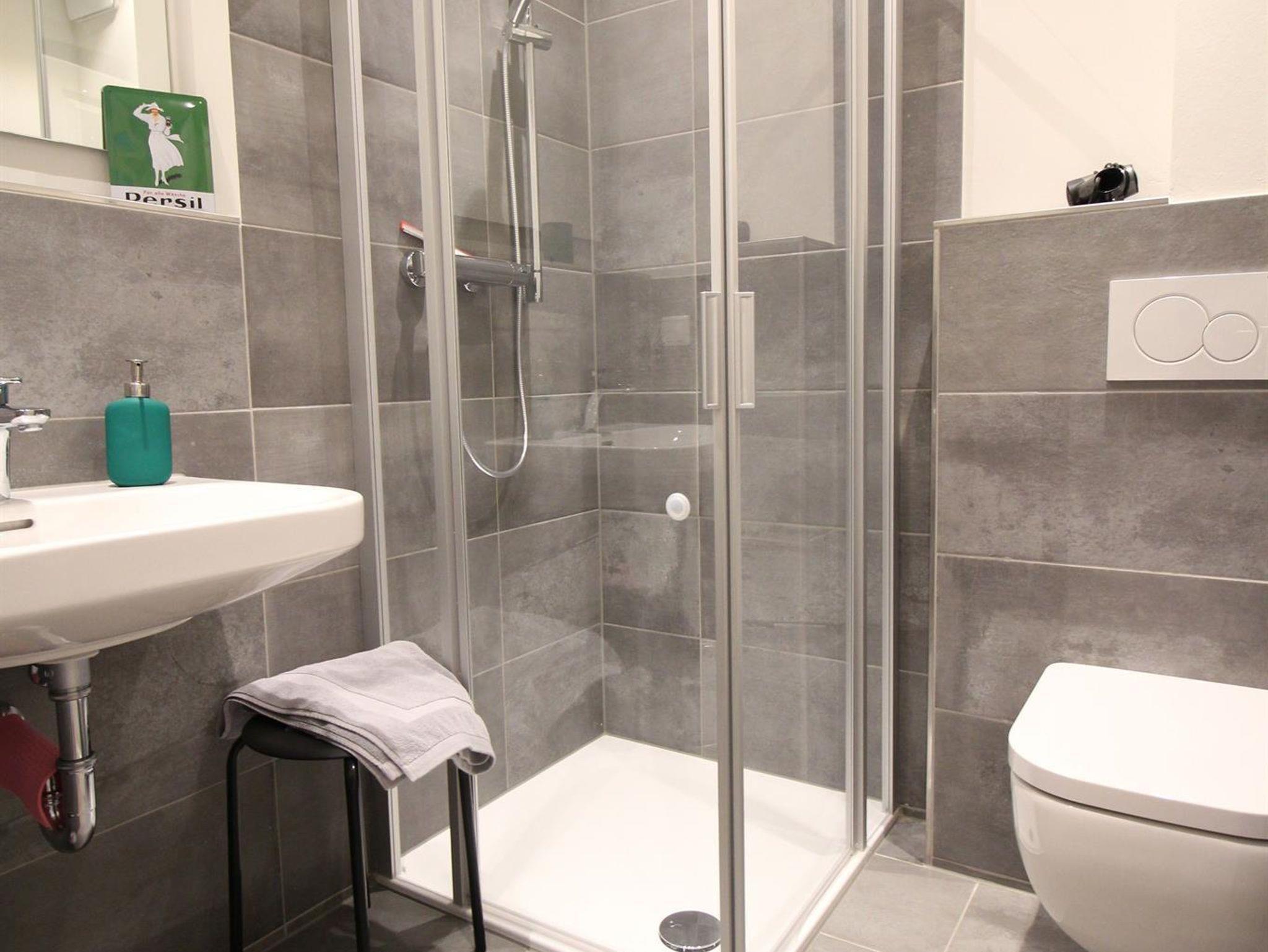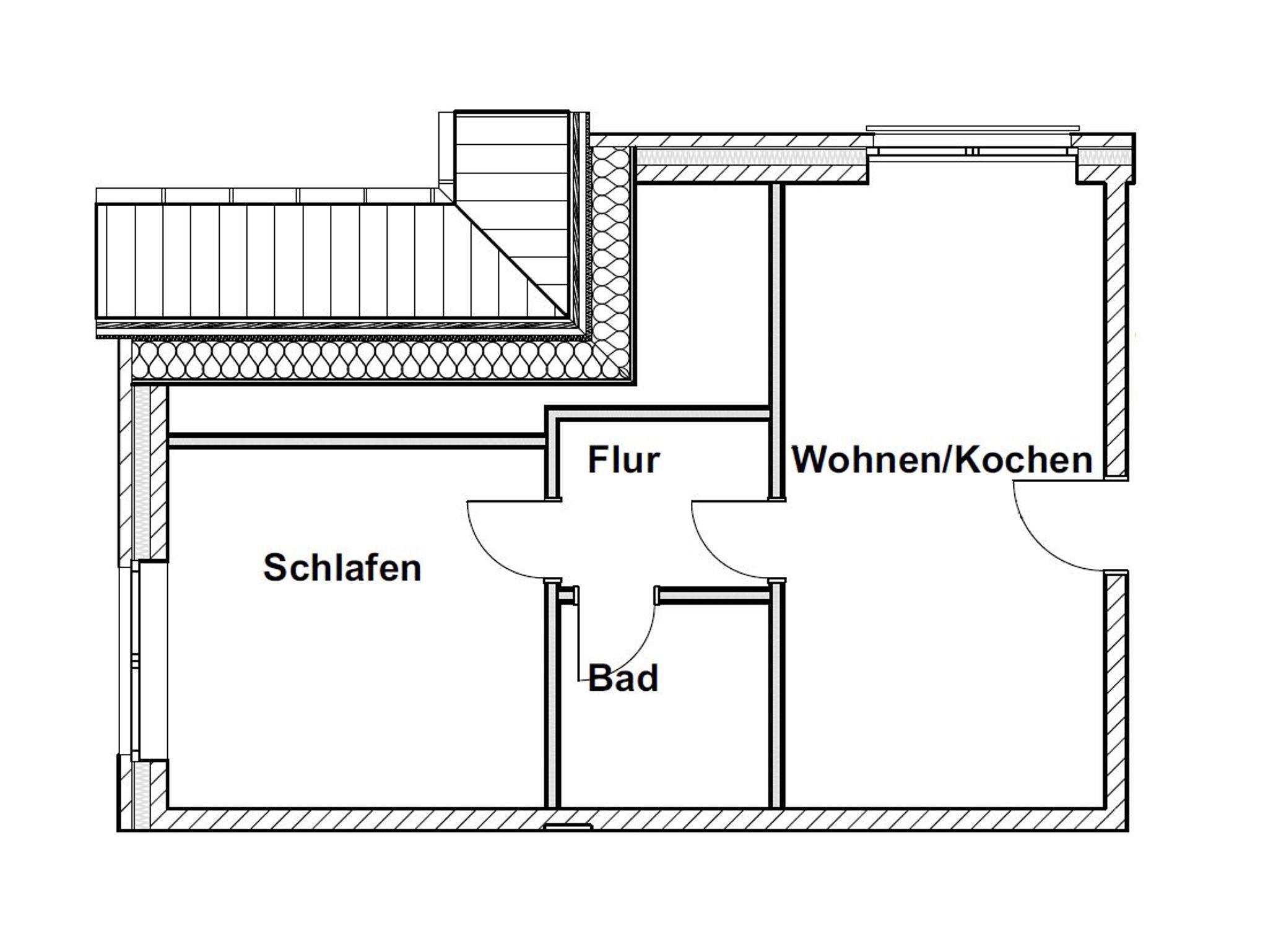 Die Wohnung ist ca. 32 qm groß, bietet Platz für zwei Personen und ist im Obergeschoss gelegen.
