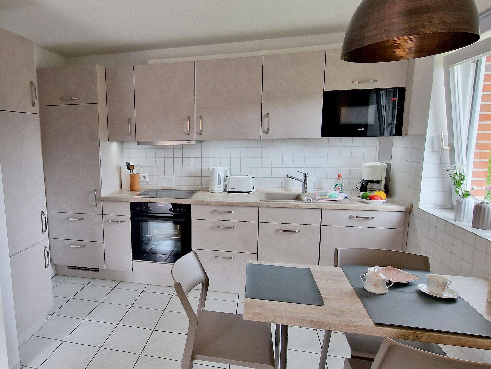 Zum Leuchtturm 12 Nr. 03 ist eine gut ausgestattete 2-Zimmer-Ferienwohnung im 1. OG. für 4 Besucher. Neben dem Schlafzimmer mit einem Doppelbett finden Sie ein Schrankdoppelbett im Wohnbereich vor. Das Bad ist hell gefliest und die schön große Küchenzeile ist u.a. mit einem 4-Plattenherd und einem Backofen bestückt. Vom Süd-West-Balkon haben Sie einen schönen Ausblick.