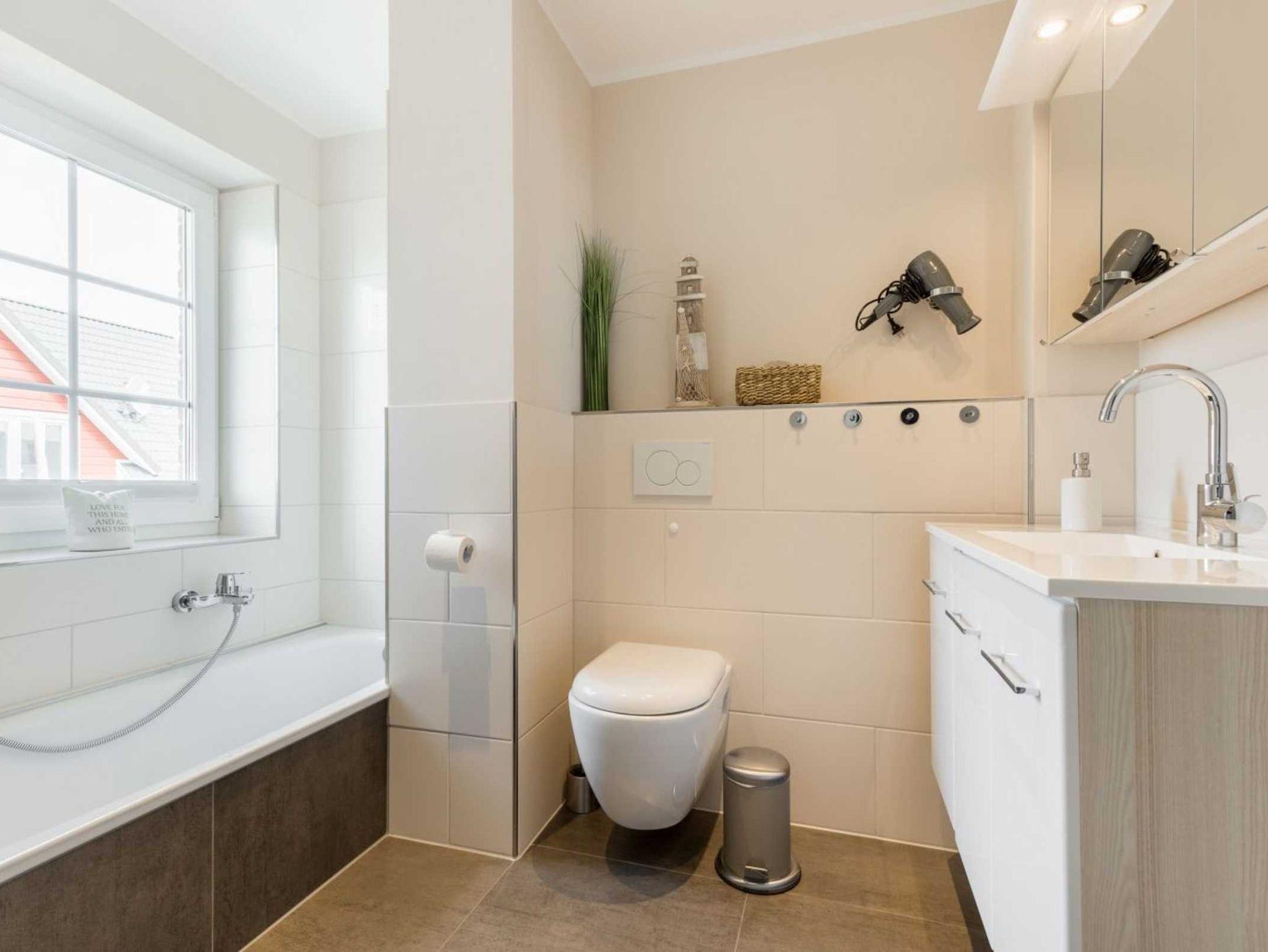 Flur mit Garderobe, Hauswirtschaftsraum mit Waschmaschine, Trockner und Bügelset. Kinderhochstuhl und Reisebett kostenlos. Kostenloses WLAN (Glasfaser), 1 Pkw-Stellplatz.