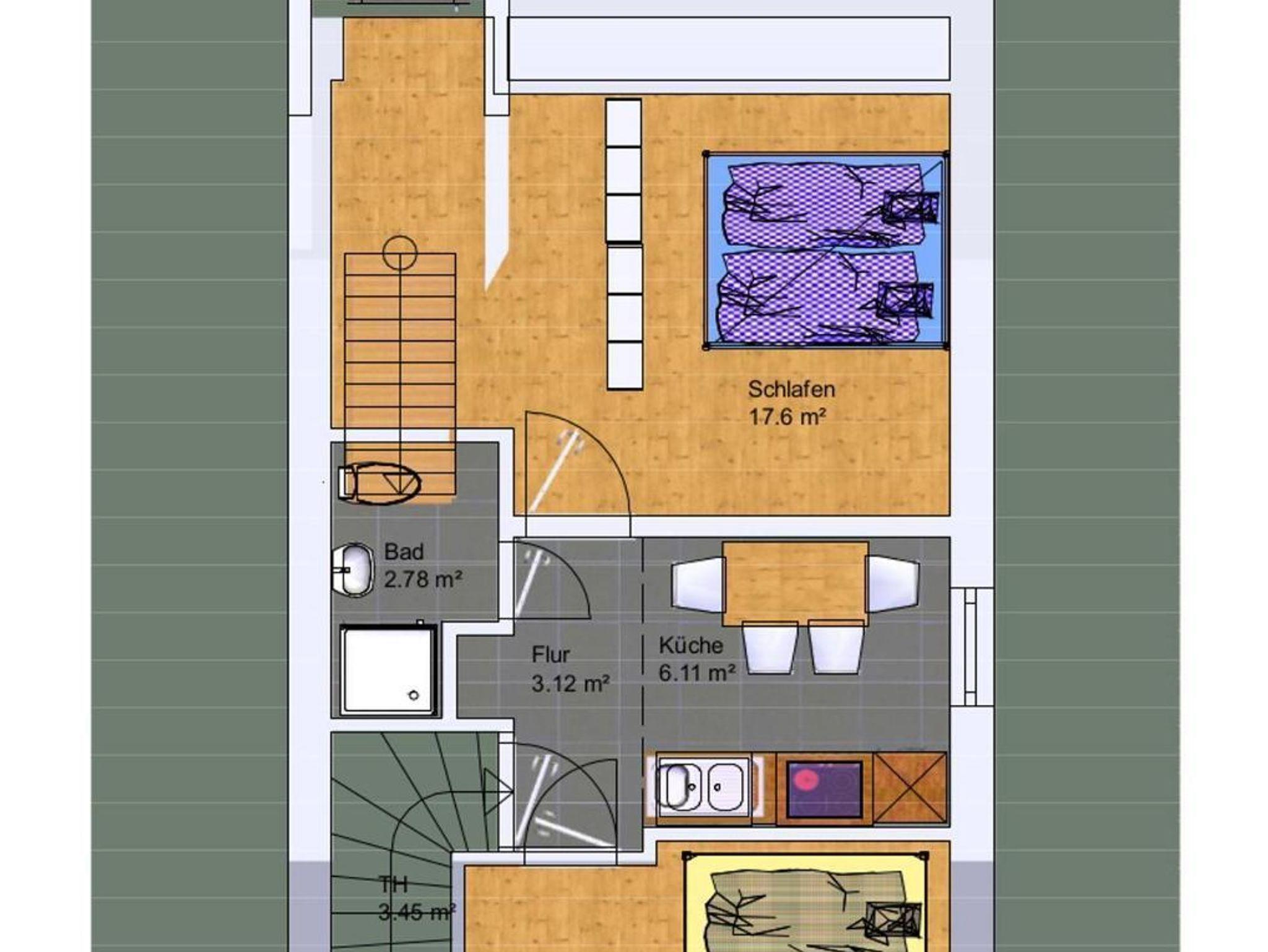 Die Ferienwohnung ist für maximal 4 Personen geeignet und liegt im 1. OG . Zur Austattung gehören TV, Radio, Küche, Spülmaschine, Mikrowelle, Kühlschrank, Gefrierfach / -Schrank, Toaster, Dusche, Balkon.