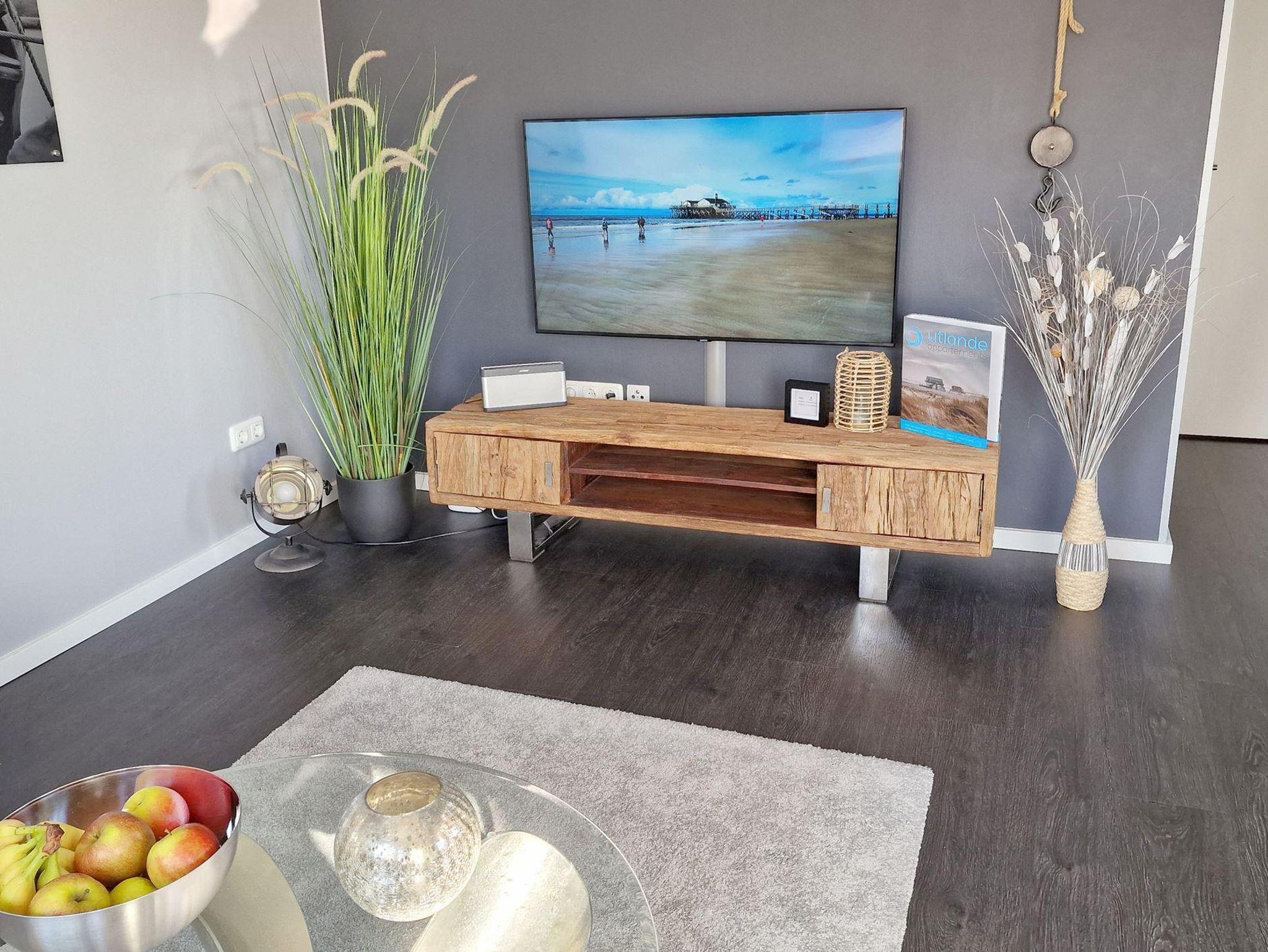 Es erwartet Sie ein gemütlicher, grosszügiger Wohnbereich mit Schlafcouch und großem Smart-TV, mit kostenlosen Zugang zu Netflix und Amazon Prime,