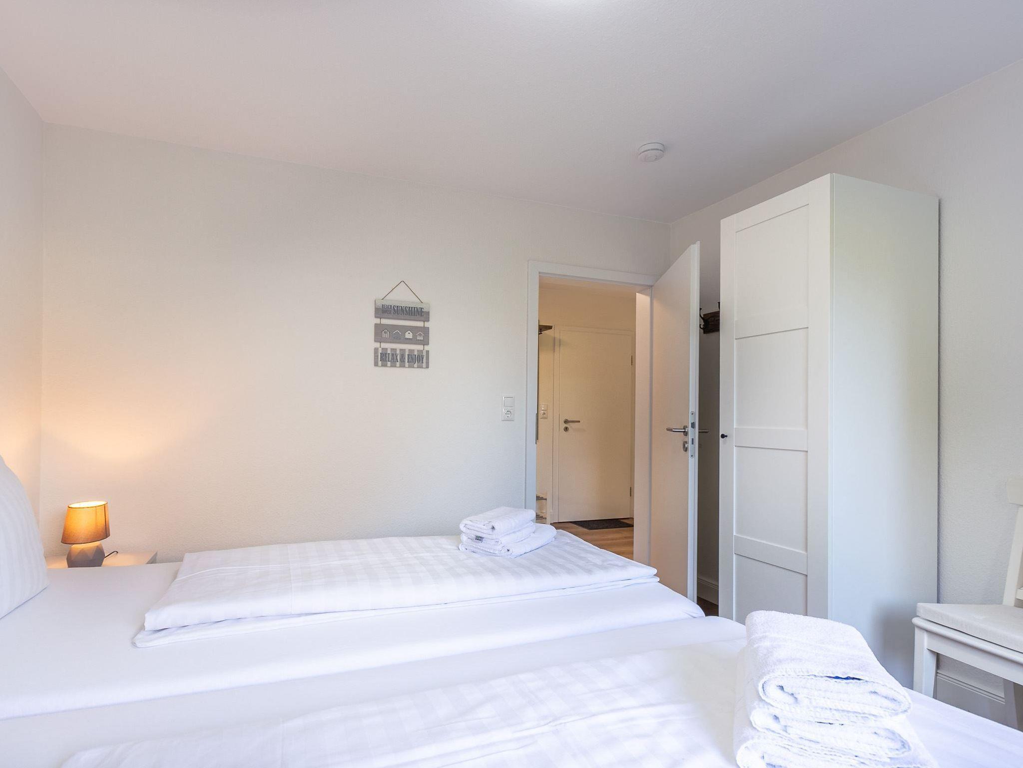 1. Schlafzimmer mit Doppelbett (2x 95x200cm), Kleiderschrank, Stuhl und Spiegel.