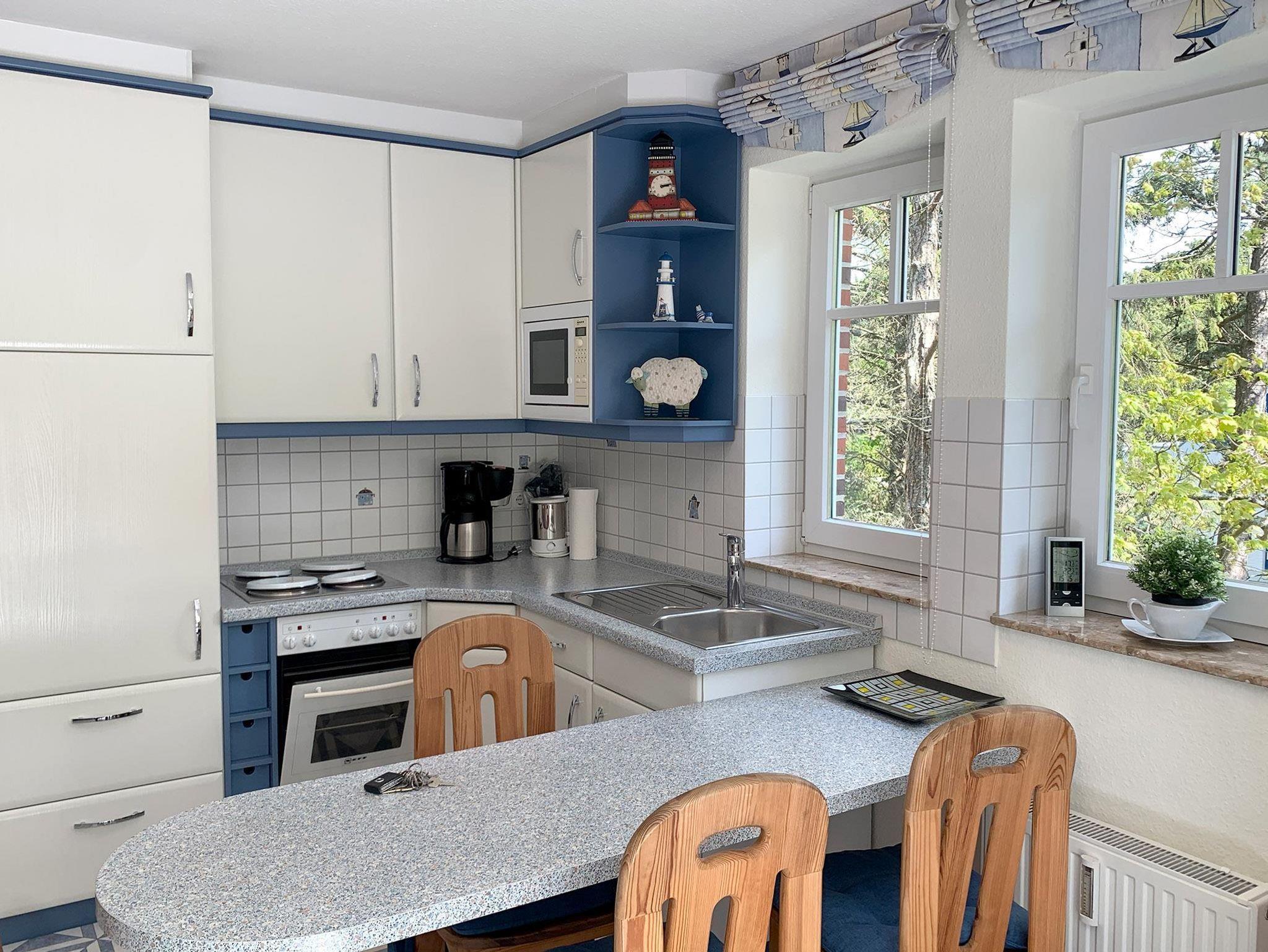 Die moderne, schön geflieste 2-Zimmer-Ferienwohnung Im Bad 70 Nr. 05 hat den Balkon direkt zum Kurwald hin, in bester Süd-Westlage im 1. OG. Die Wohnung für bis zu 2 Personen ist mit einer hellen Küchen-Essecke ausgestattet. Das Doppelbett im Schlafzimmer steht unter eine gemütliche Schräge.