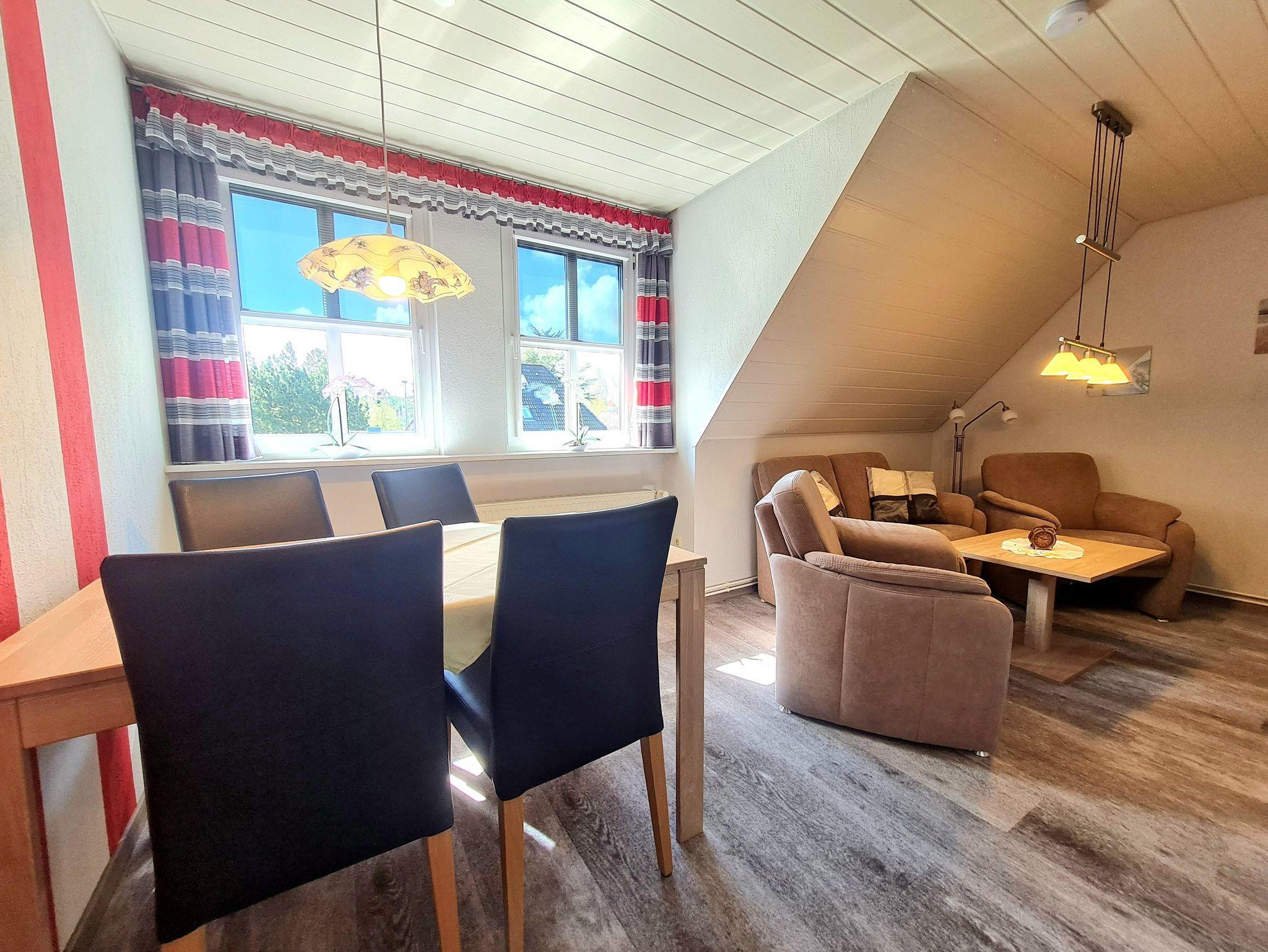 Die behaglich eingerichtete Ferienwohnung befindet sich in der ersten Etage eines Einfamilienhauses und bietet alles, was Sie für einen angenehmen Aufenthalt benötigen.