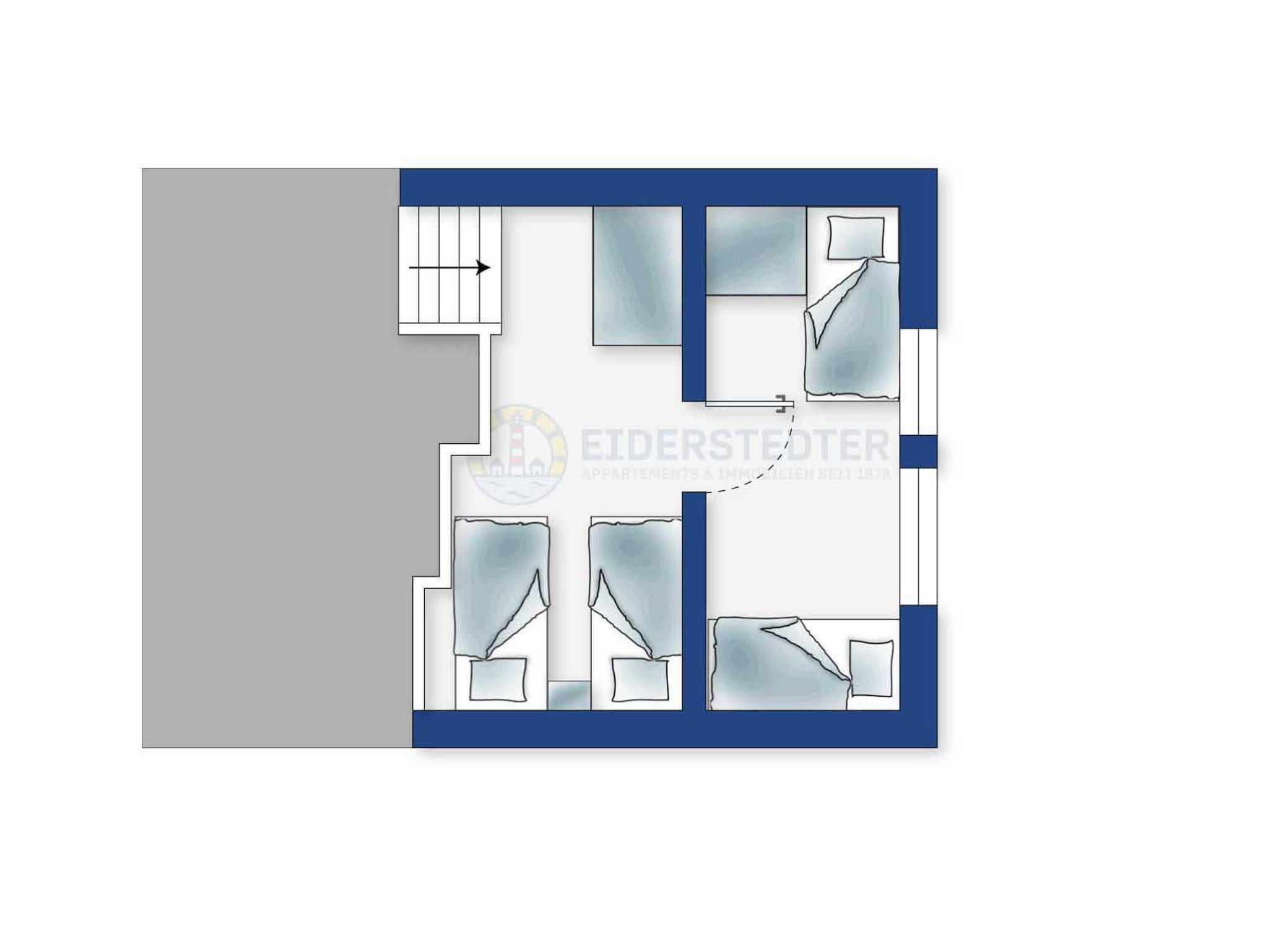 Gemütlicher Mittelhausteil Friesenglück mit 3 Zimmern und ca. 50 qm auf 2 Ebenen (EG, OG) für bis zu 4 Personen. In grüner Lage gegenüber des Wäldchens im Ortsteil Böhl in St. Peter-Ording. Hunde sind herzlich willkommen.