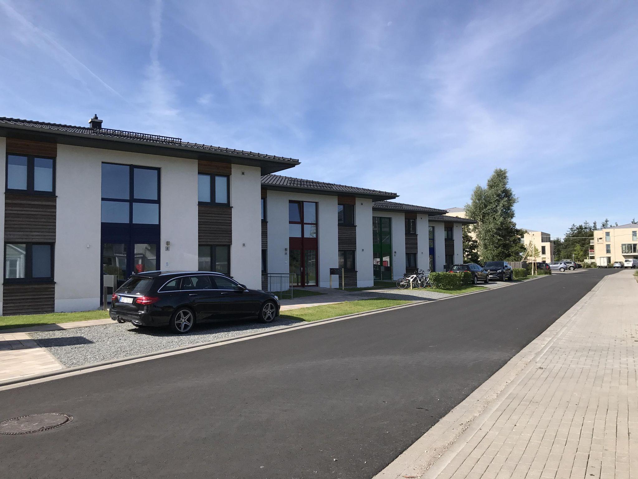 Gehobene Ausstattung, Wohnzimmer mit offener Küche, Bad mit ebenerdiger Dusche, Echtholzparkett und Fußbodenheizung, eigener Parkplatz vor dem Hauseingang.