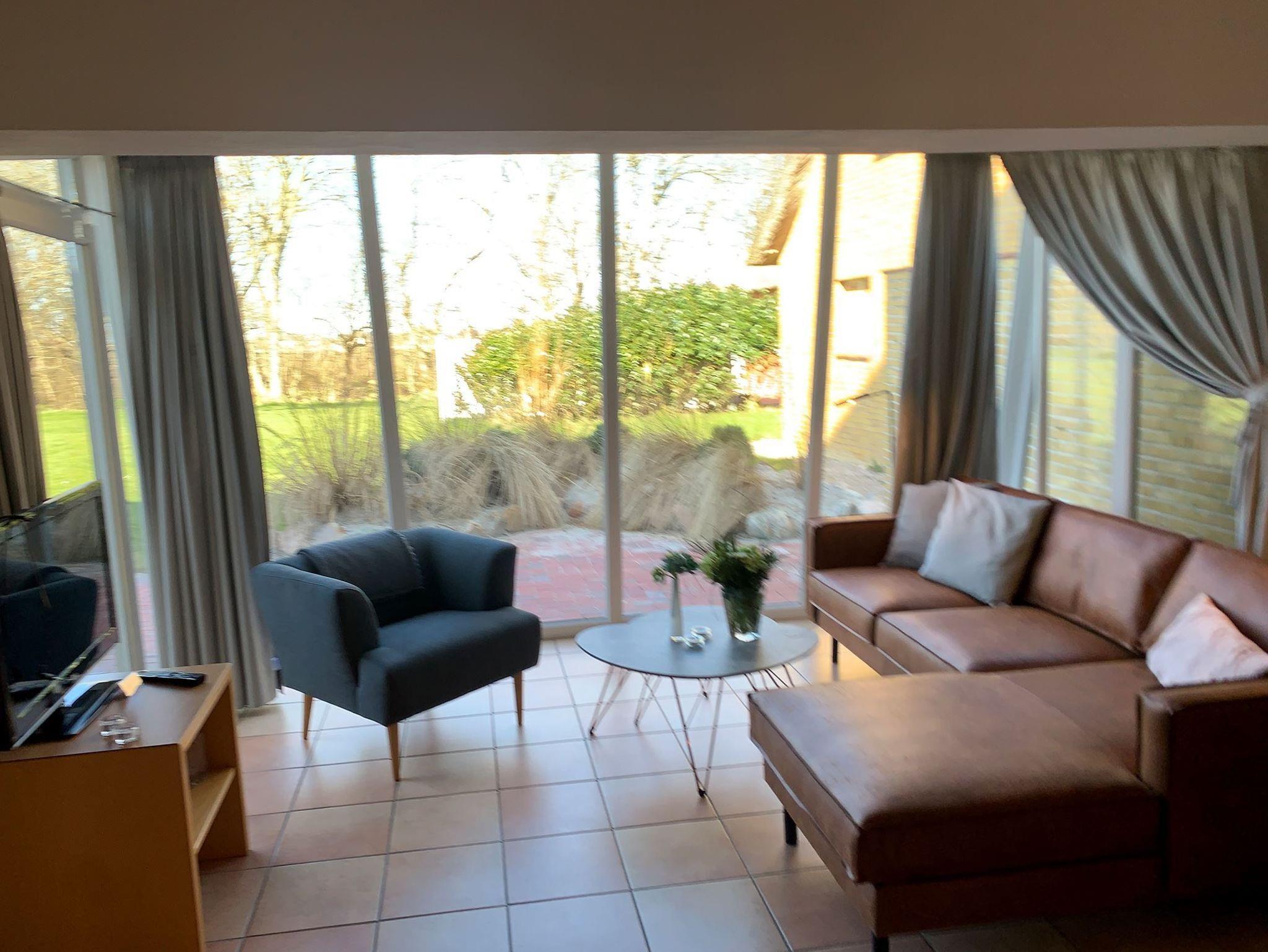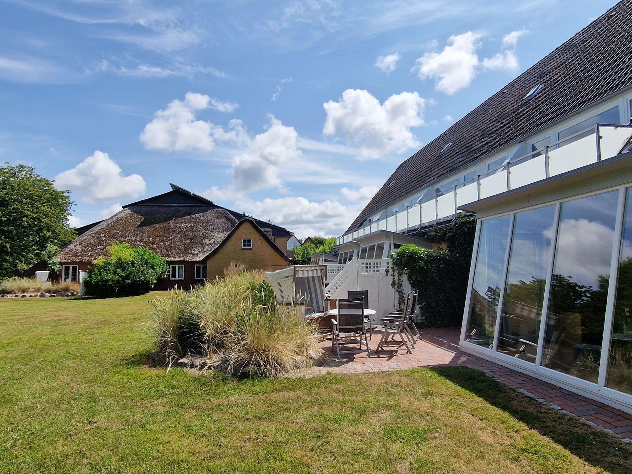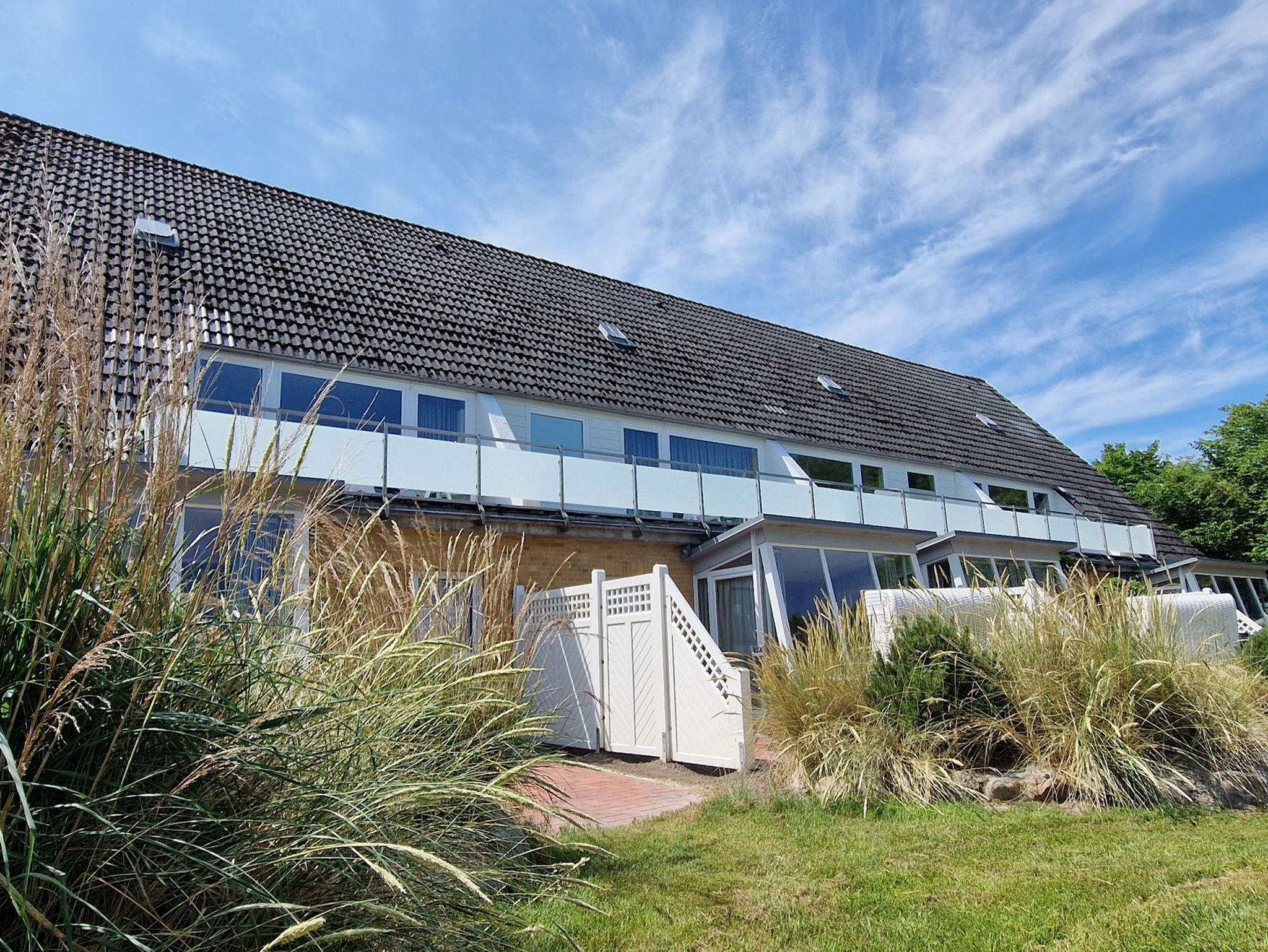 Die Wohnung 4 in der Anlage Luna I liegt im Erdgeschoss des Hauses. Sie ist 55qm groß und geeignet für bis zu 4 Personen. Der Eingangsbereich ist mit einer Garderobe ausgestattet. Das Schlafzimmer verfügt über ein Doppelbett (180x200cm, getrennte Matratzen). Weitere Personen können ein Schrankbett (180x200cm, Matratze nicht durchgehend) im Wohnbereich nutzen. Im Weiteren ist ein Duschbad mit Waschbecken und WC vorhanden. Der Wohn-und Essraum verfügt über eine offene integrierte Einbauküche, einen Esstisch und Sitzbereich mit Fernseher. W-Lan steht kostenlos zur Verfügung. Die Einrichtung ist modern und hochwertig. Der vorgelagerte Wintergarten sorgt für eine angenehme Helligkeit und ermöglicht einen Blick in die wunderschöne Grünanlage. Vom Wohnbereich aus gelangen Sie ebenerdig auf die südlich ausgerichtete Terrasse, die mit Gartenmöbeln und einem Strandkorb ausgestattet ist. Von hier aus blicken Sie in den Garten und auf die alten Obstbäume.