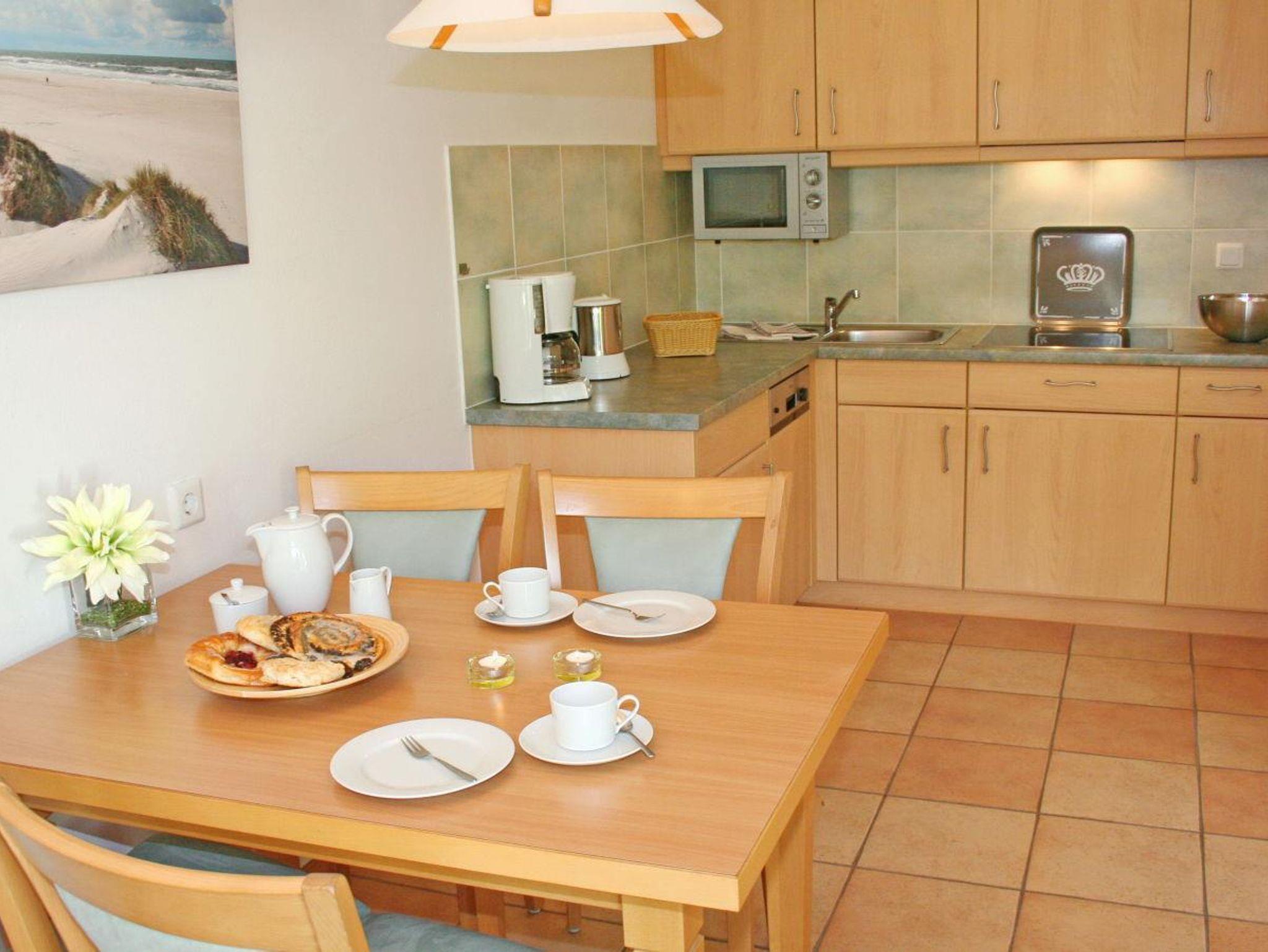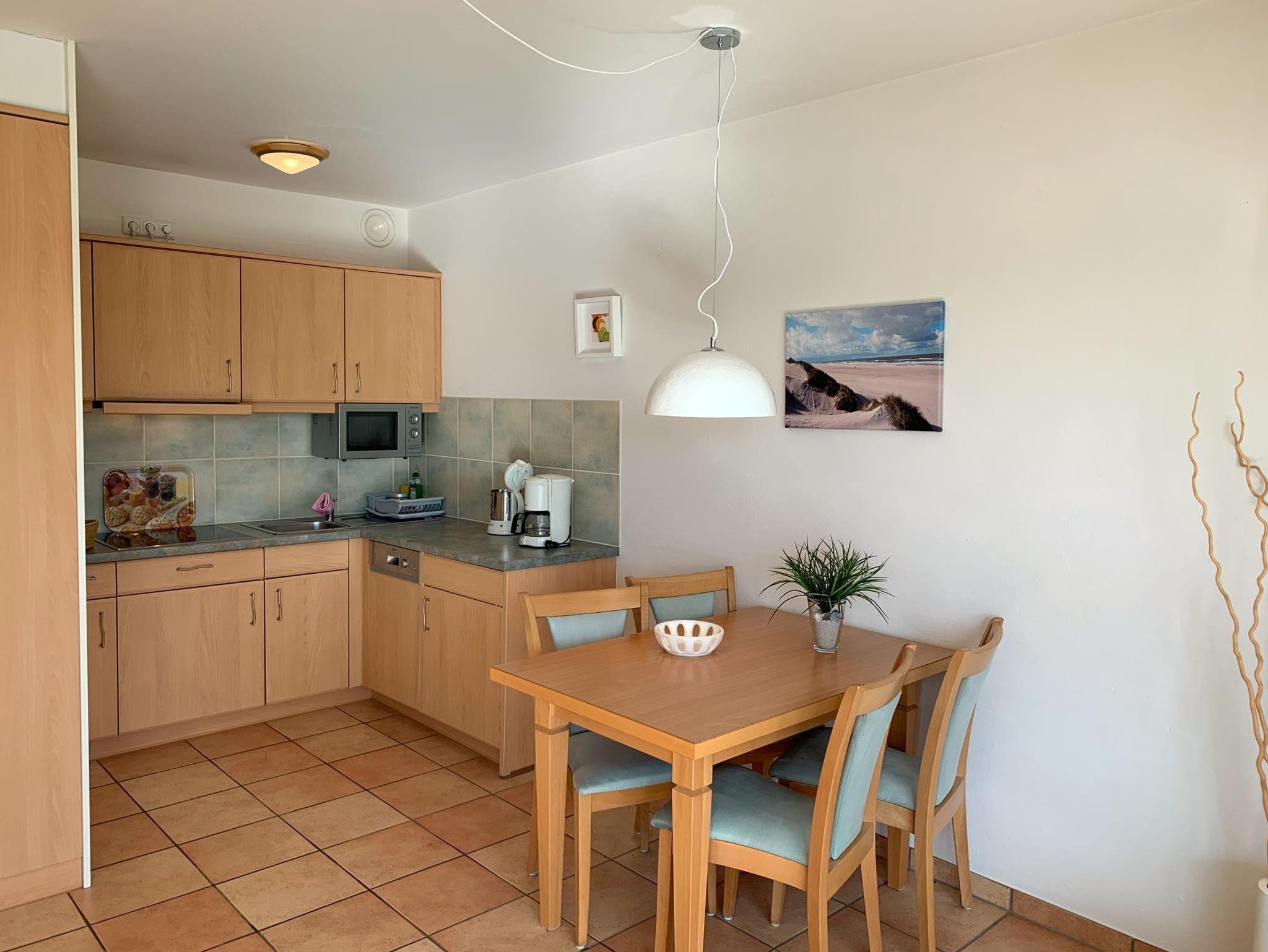 • komplett eingerichtete Küche, Mikrowelle, Geschirrspüler, Kühlschrank mit Gefrierfach, Wasserkocher, Kaffeemaschine (Filter), Toaster.
