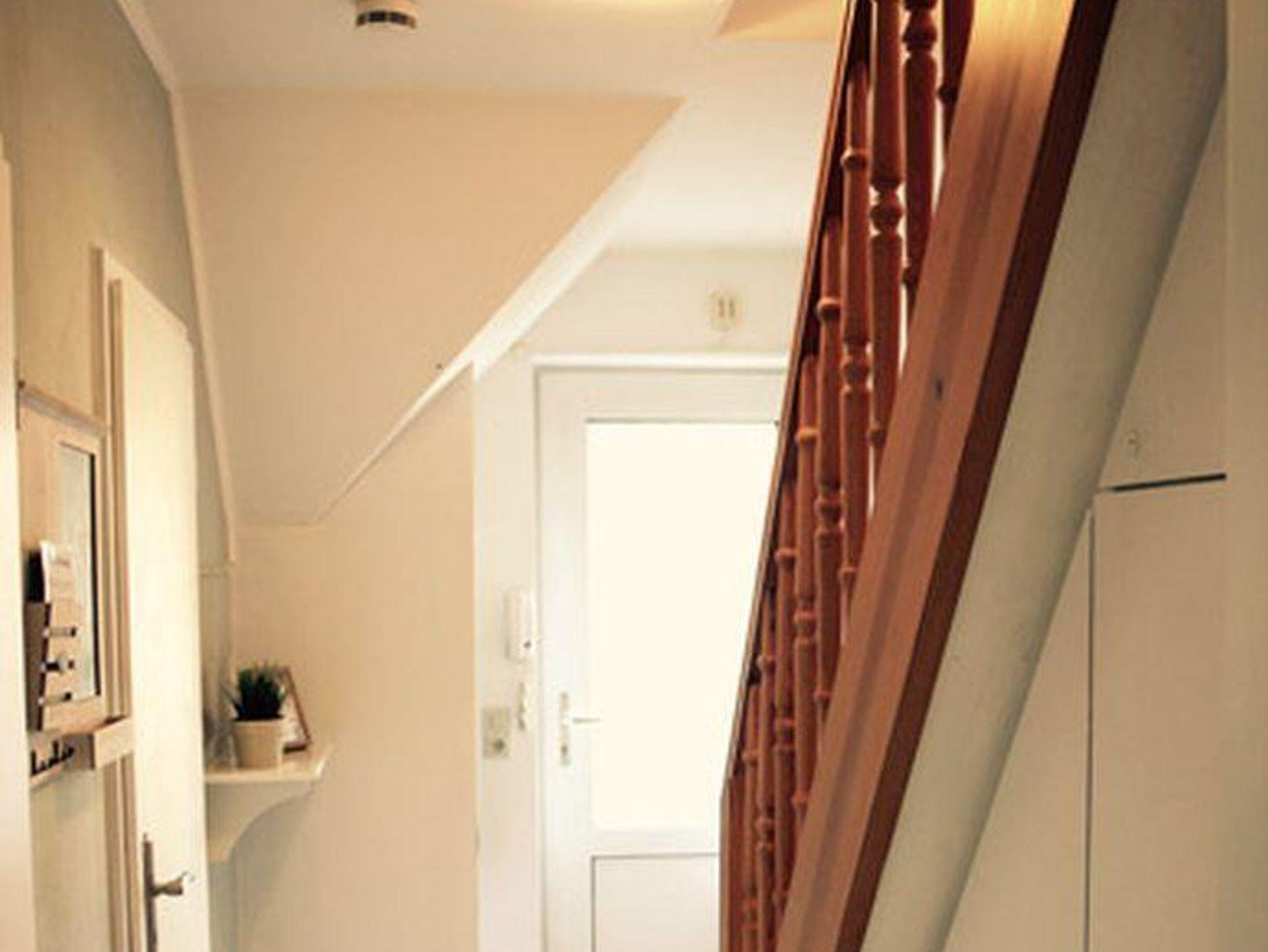 Flur Garderobenschrank, Spiegel, Einbaukleiderschrank, Staubsauger, Treppe nach oben