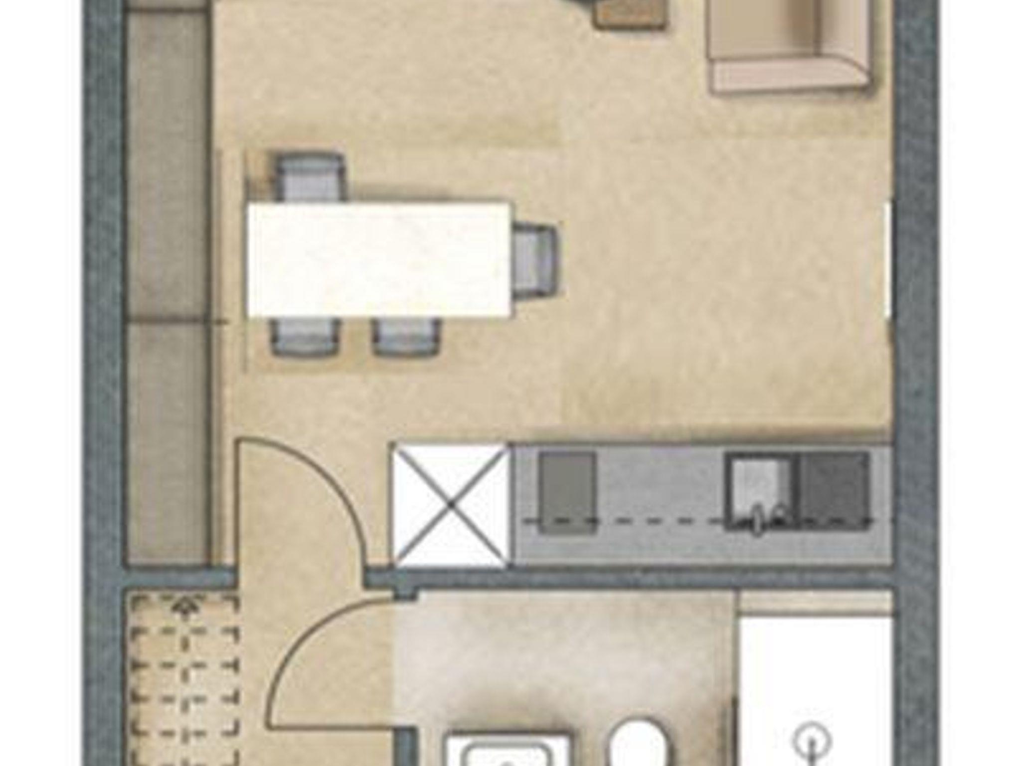 Wohnzimmer Couch, Couchtisch, Sessel, Hocker, Stehlampe, Anrichte, Kabel-TV, Flachbildfernseher mit HDMI- und USB-Anschluss, Radio mit Bluetooth-Schnittstelle und CD, DVD/Blue ray-Player, Nachtspeicherofen, Esstisch, 4 Stühle, Küchenzeile, 4 Plattenherd mit Ceranfeld und Backofen, Dunstabzugshaube, Kühlschrank, Spülmaschine, Mikrowelle, Kaffeemaschine, Wasserkocher, Eierkocher, Toaster, Handmixer, Geschirr, Kochtöpfe