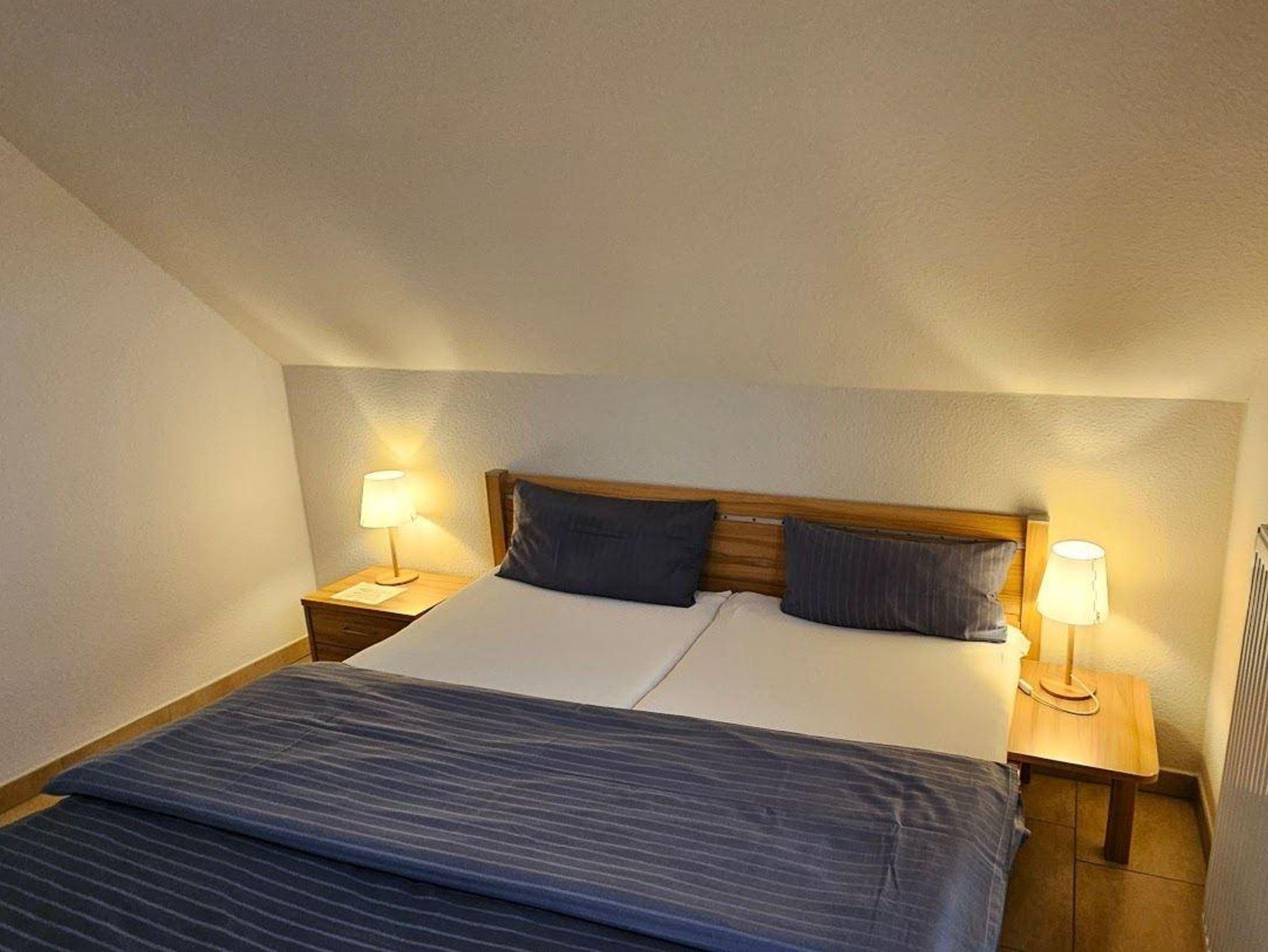 2 Schlafzimmer mit 2 Einzelbetten (je 90x200cm) und kommode. Zimmer eignet sich wegen der niedrigen Deckenhöhe nur für kinder. Zugang über enge schmale Treppe.