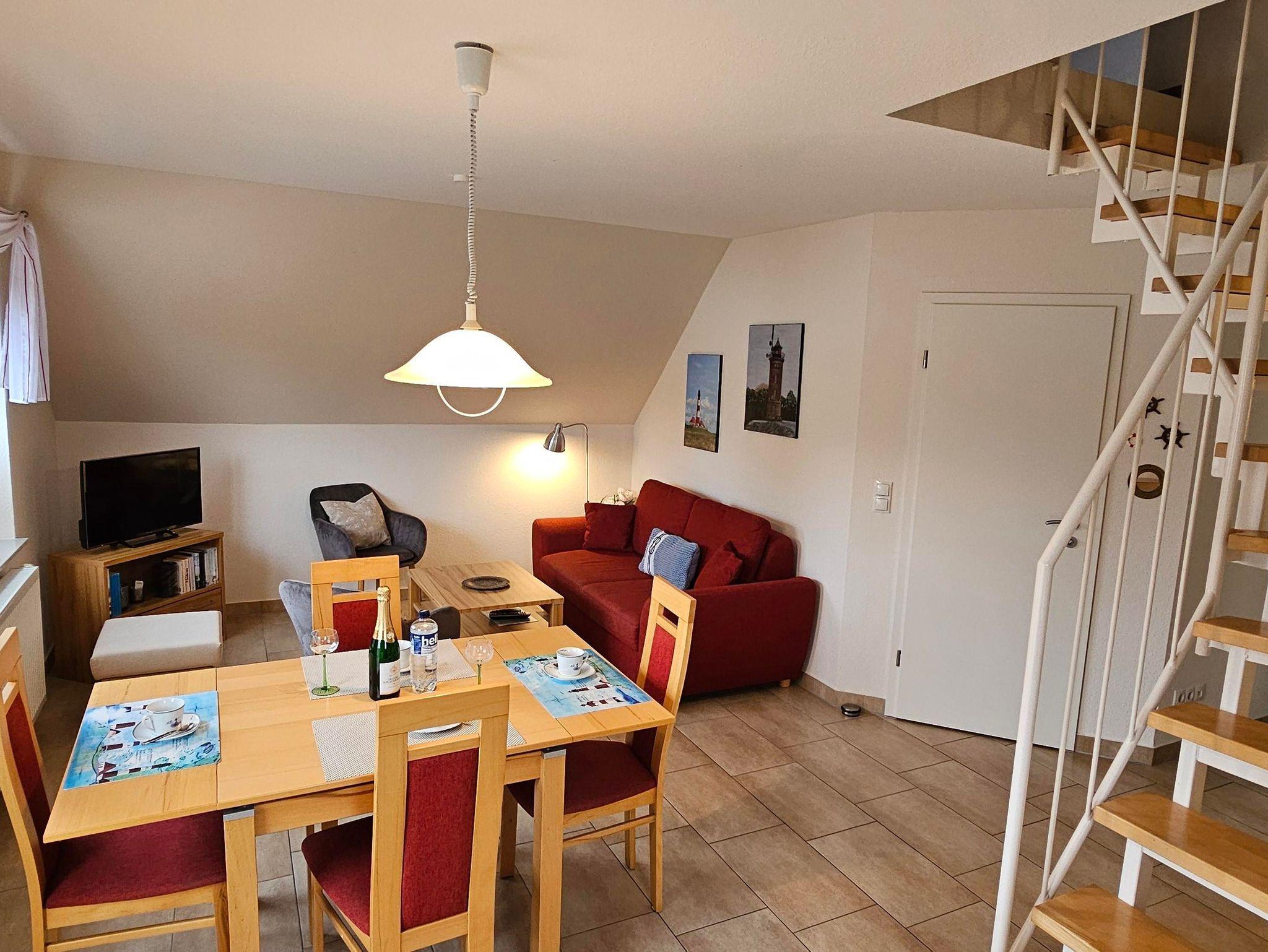 Moderne 3-Zimmer-Ferienwohnung Deck 1 mit ca. 55qm auf 2 Ebenen (OG,DG. Zugang über Außentreppe) für bis 4 Personen ( Wohlfühlbelegung:max. 2 Erwaschsene). In ruhiger, zentrumsnaher Lage im Ortsteil Dorf in St. Peter-Ording.