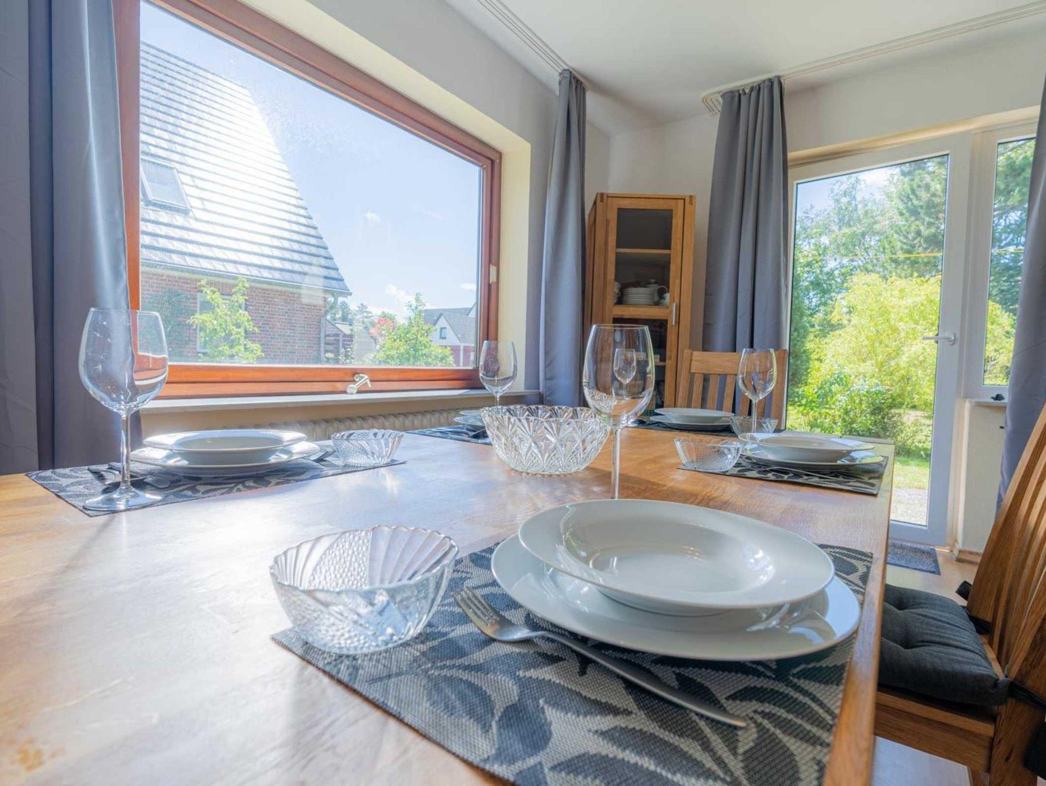 Wohnzimmer mit (ausziehbarem Schlaf-) Sofa (140x200cm), einem Sessel, kleinem TV (SAT), DVD-Player und Radio. Essbereich mit Esstisch mit 3 Stühlen und gemütlicher Eckbank für 2-3 Personen. Direkter Zugang zur möblierten sonnigen Gartenterrasse nach Südwesten.