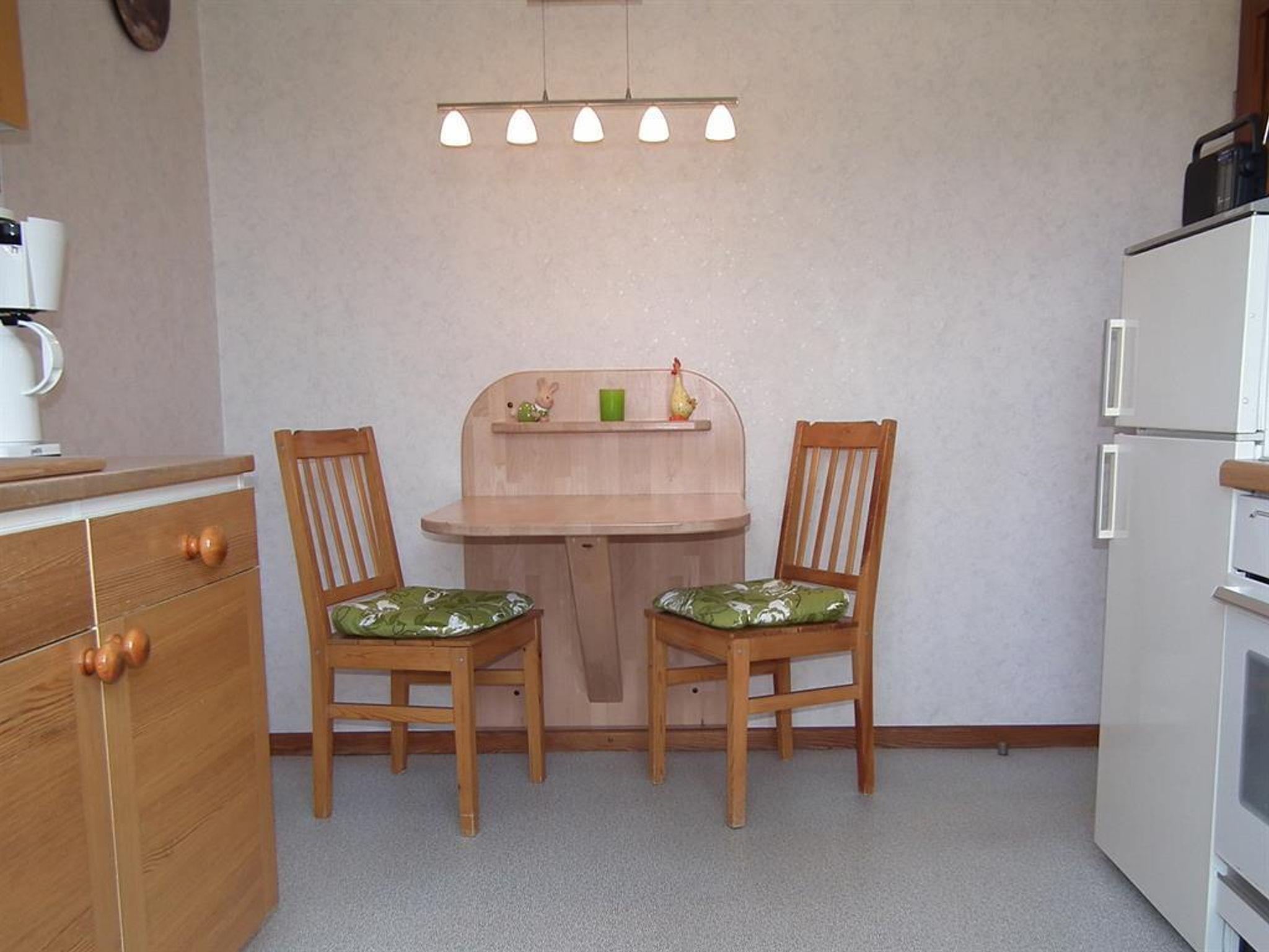 Eine komplett ausgestattete separate Küche mit Geschirrspülmaschine und mit Essplatz für 2 Personen lädt zum Kochen ein. Ein großzügiger Abstellraum in der Wohnung, PKW-Stellplatz und überdachte Fahrradabstellplätze ergänzen das Angebot. Ein Freisitz mit Grillkamin auf dem großen Rasen mit Blick auf den angrenzenden Wald ermöglicht schöne Stunden im Freien. Auf Anfrage ist ein Zustellbett für ein Kleinkind vorhanden.