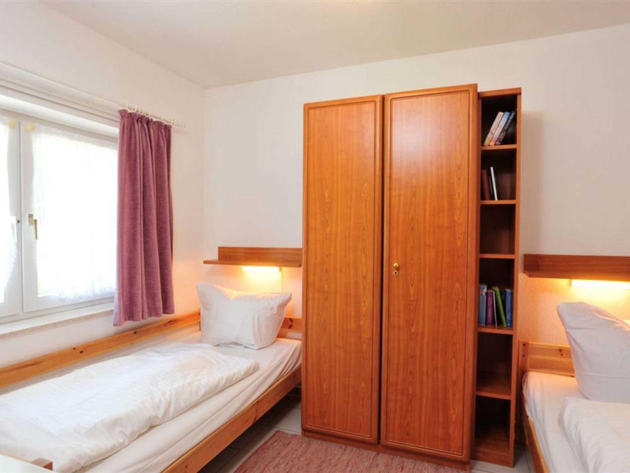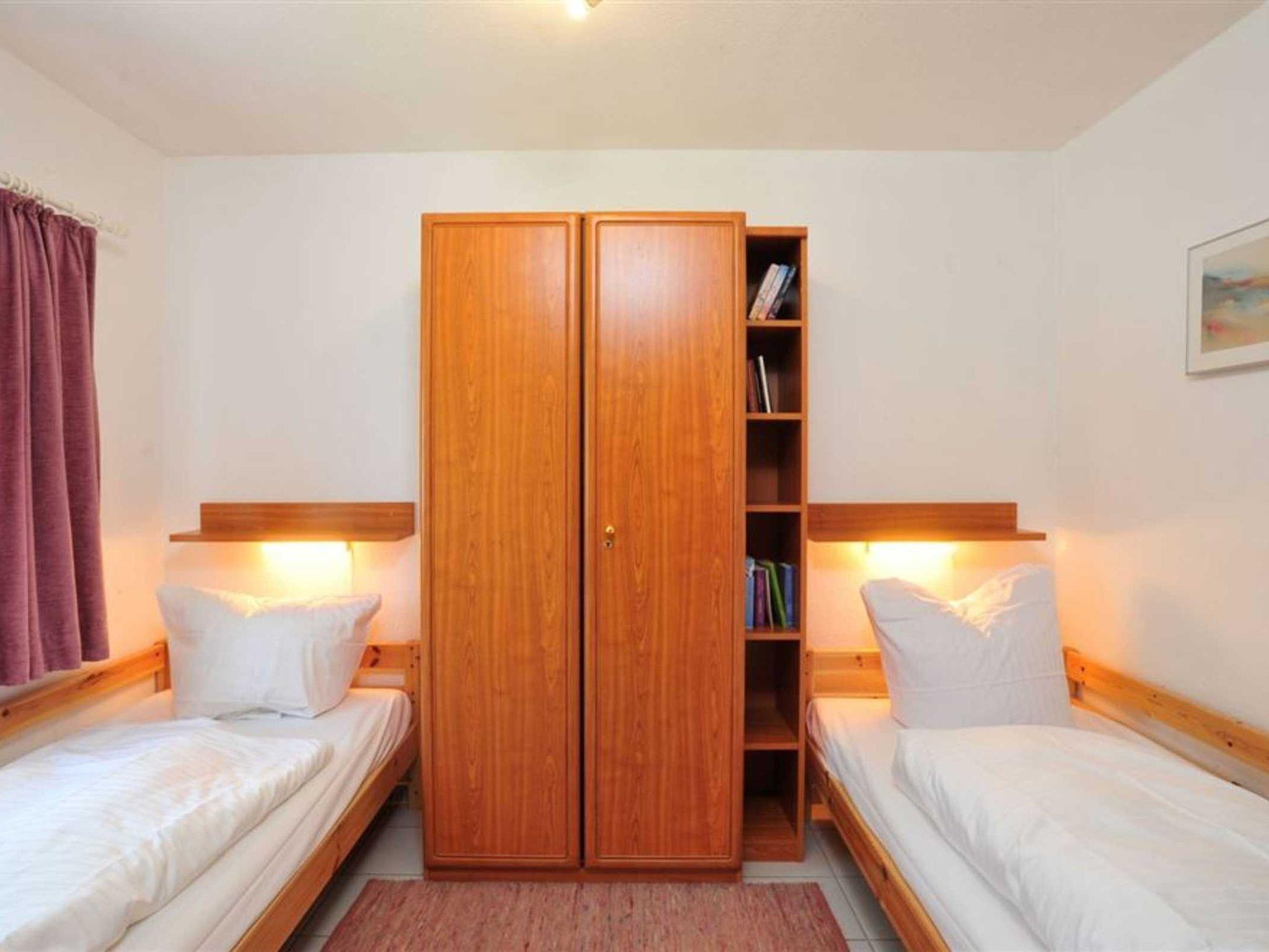 Schlafzimmer mit 2 Einzelbetten (je 90x200cm) und Kleiderschrank.