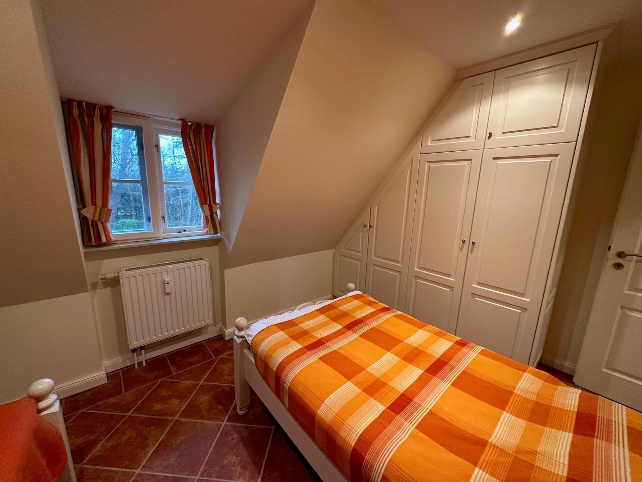 Reetdachhaus in einzigartiger Lage mitten im Herzen des historischen Dorfkerns. Die stilvoll eingerichtete 3-Zimmer-Wohnung im Obergeschoss/Dachgeschoss mit möbliertem Balkon bietet einen hohen Wohnkomfort und ist für max. 4 Personen geeignet. Wohnraum mit bequemer Couch, Esstisch, LCD-Flach-TV, Radio. Volleingerichtete Küchenzeile mit Ceranfeld, Backofen, Geschirrspüler, Mikrowelle mit offener Raumaufteilung zum Wohnzimmer ist der Treffpunktder Wohnung. Ein Schlafzimmer mit Doppelbett (180x200) im DG, ein Schlafraum mit 2 Einzelbetten (90x200) im OG. DG -offen von einer Treppe vom Flur erreichbar. Duschbad/WC. Gemeinschaftswaschmaschine und Trockner, Fahrradkeller, PKW-Stellplatz Nr. 7. Die Hausordnung ist einzuhalten. Nichtraucher, kostenloses Internet, 1 Haustier erlaubt. Das Grillen mit Holzkohle u. offenes Feuer ist wegen der Brandgefahr nicht erlaubt.