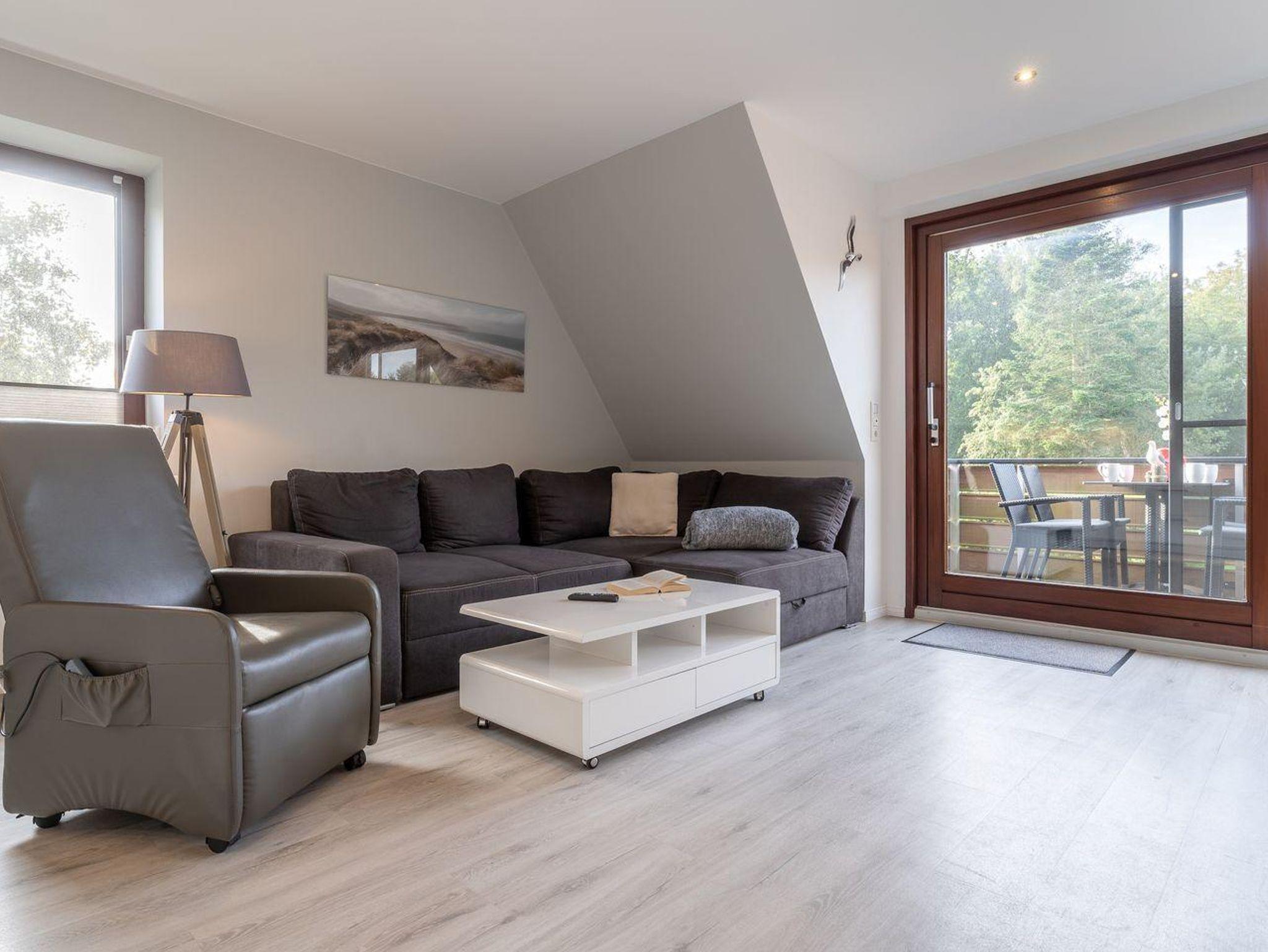 Die 55m² große Ferienwohnung, welche im Jahr 2020 vollständig saniert wurde, liegt im Obergeschoss und bietet bis zu 4 Personen Platz für einen unvergesslichen Urlaub in St. Peter-Ording. Durch die Lage und Ausstattung ist die Ferienwohnung besonders familienfreundlich, Kinder sind hier herzlich willkommen. Die Ferienwohnung verfügt über einen nach Südwesten hin ausgerichteten, vollständig möblierten Balkon, der Abendsonne für ein herrliches Beisammensein bietet. Auch der Urlaub mit Hund ist hier möglich, ein Hund begleitet die Familie nach St. Peter Ording. Das moderne Wohnzimmer wirkt durch die große Fensterfront und den Übergang zum Balkon hell und freundlich. Zur Ausstattung dort gehören eine komfortable Couch und der große Esstisch, an dem die ganze Familie Platz findet. Die Couch lässt sich zum komfortablen Schlafplatz für 2 Personen umfunktionieren. Für die multimediale Unterhaltung sorgen ein großer Flachbild-TV, Radio mit Bluetooth und kostenfreies W-LAN. Für die Versorgung im Urlaub sorgt die vollumfassend ausgestattete, angrenzende Küche. Hier stehen unter anderem Cerankochfeld und Backofen sowie Kühlschrank, Mikrowelle und Nespresso-Maschine bereit. Orangenpresse und Milchaufschäumer gehören ebenfalls zum Inventar. Im hellen, einladenden Schlafzimmer steht ein komfortables 180x200cm Doppelbett zur Verfügung. Zur edlen Ferienwohnung gehören weiterhin Duschbad mit WC und Haartrockner. Alle Fenster der Ferienwohnung sind mit Fliegenschutzgitter und Verdunklungsplissees ausgestattet. Die große Fensterfront ist mit elektrischem Außenrollo ausgestattet, um Licht und Sichtschutz nach Belieben regulieren zu können.