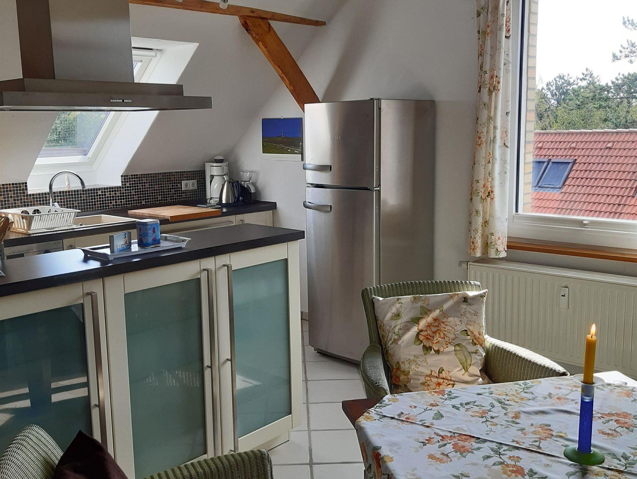 Kostenfreier Internetzugang (WLAN), Flur mit Garderobe, Wohn-Esszimmer mit Balkonzugang, Sofa, Couchtisch, 55 Zoll SAT TV, Pioneer VHS, DVD Player, HiFi Anlage mit CD Player, Internetradio und Bluetooth, Esstisch mit 4 Stühlen, Kinderhochstuhl auf Anfrage, offene Küche mit Kochinsel ausgestattet u.a. mit Kühlschrank inklusive Gefriermöglichkeit, 4-Felder-Herd (Ceran), Backofen, Mikrowelle mit Grillfunktion, Dunstabzug, Geschirrspülmaschine, Kaffeemaschine, Wasserkocher und Toaster, Schlafzimmer 1 mit Doppelbett (Boxspringbett, 180 x 200cm), Kleiderschrank und zusätzlichem Flachbild Fernseher, kleines Schlafzimmer 2 (6qm unter Dachschräge) mit Doppelbett (getrennte Matratzen, 160 x 200cm), Babyreisebett zubuchbar, Verdunkelungsmöglichkeiten, Bad 1 mit Fenster, Badewanne, Waschbecken, Spiegel, Bidet und WC, Duschbad 2 mit fast ebenerdiger Dusche, Handtuchheizung, Waschbecken, Spiegel, Fön und WC, Wäschepakete pro Buchung und Person einmalig inklusive, weitere Wäsche zubuchbar, Waschmaschine und Wäschetrockenständer im Objekt.