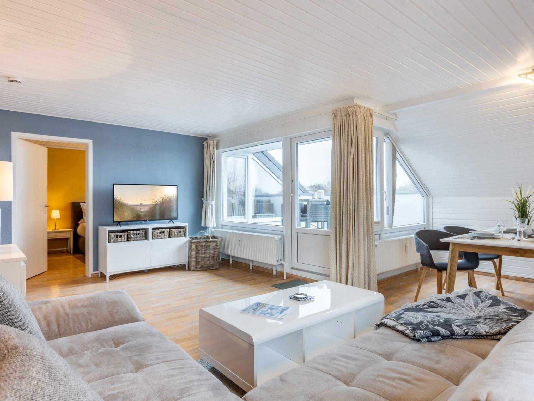 Komfortable 2-Zimmer-Ferienwohnung Strandläuferkoje im Haus Loreley mit ca. 65 m² auf 1 Ebene (2. OG) für bis zu 4 Personen. Zentral gelegen im Ortsteil Bad in St. Peter-Ording. Alle Geschäfte und Restaurants des Kurzentrums, sowie die Dünentherme, die Promenade und der Strand befinden sich quasi direkt vor der Haustür. Loggia-Balkon nach Südwesten mit kleinem Meerblick.