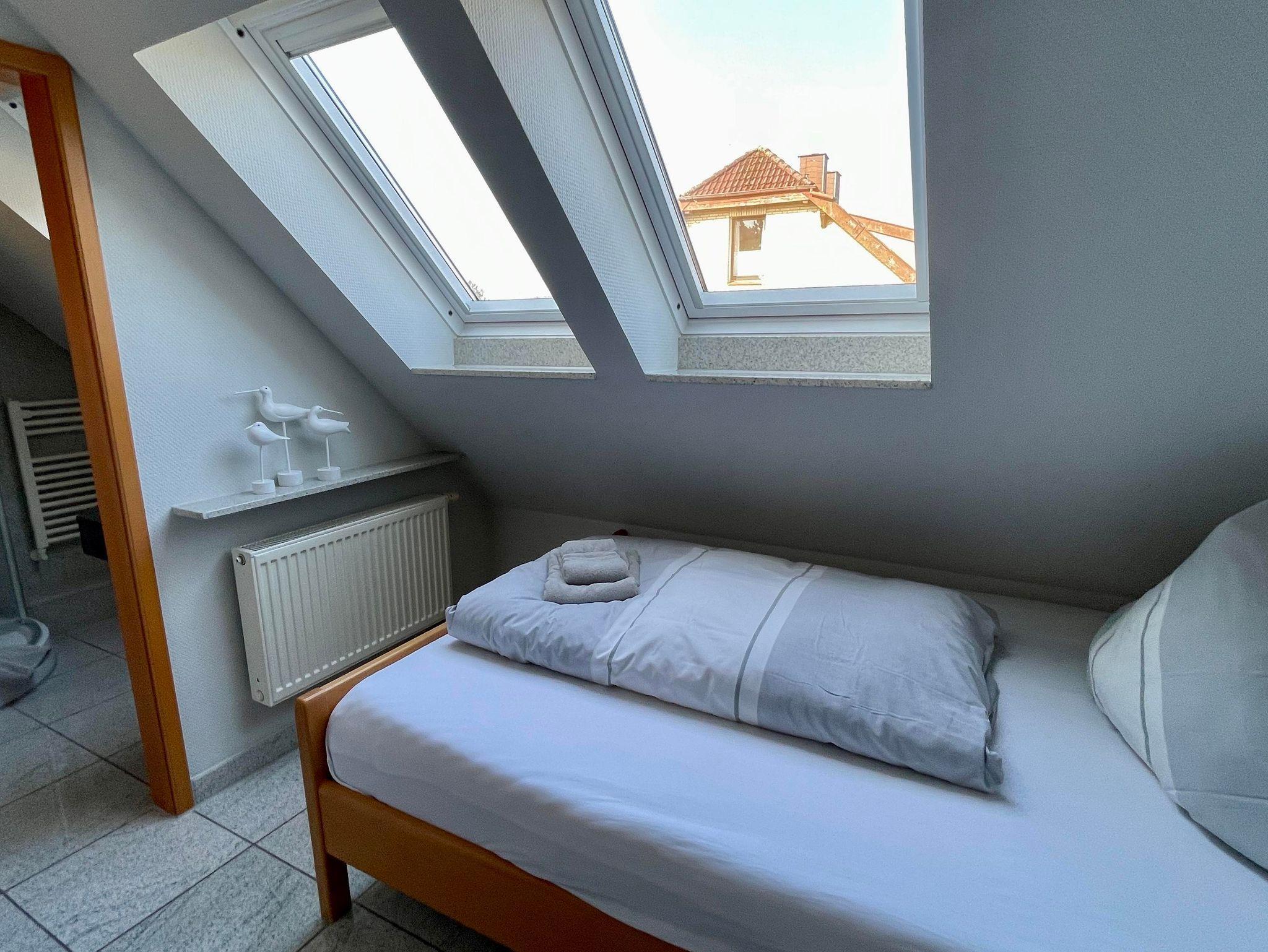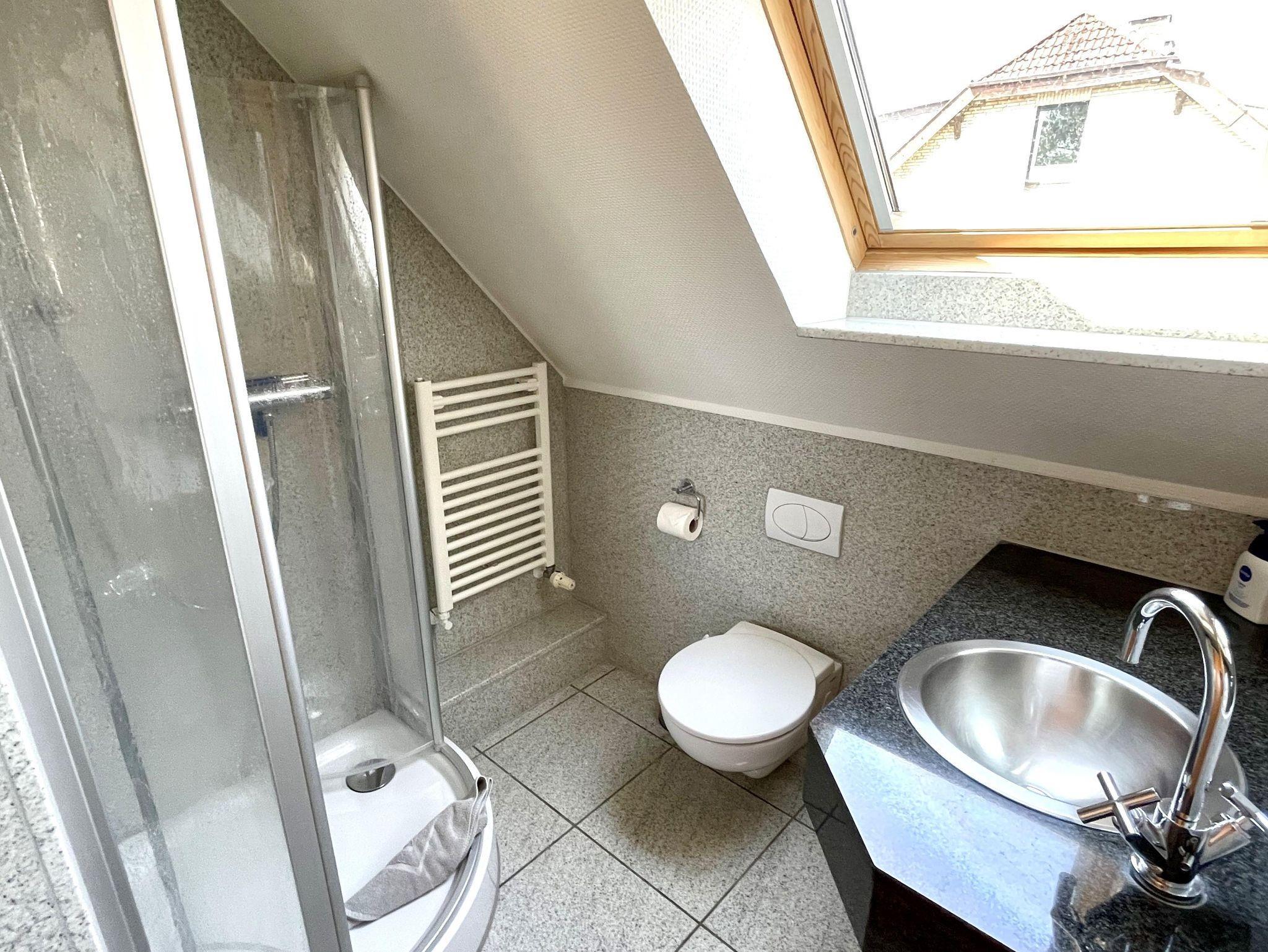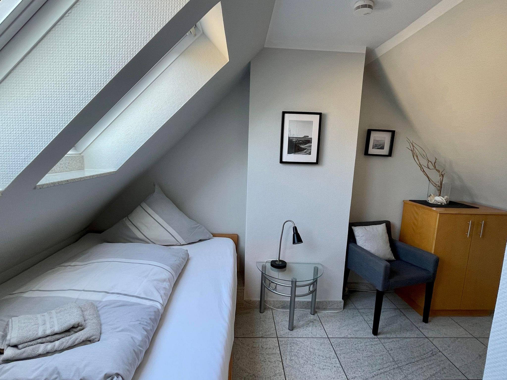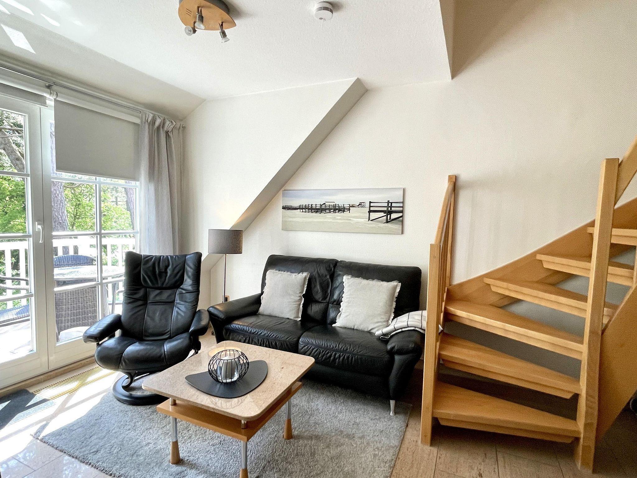 Appartementhaus in attraktiver baulicher Gestaltung in ruhiger bevorzugter Lage zwischen Badzentrum mit Kureinrichtungen und dem gemütlichen Dorf. Gaszentralheizung. 1 Pkw-Stellplatz pro Appartement am Haus und Fahrradstellplatz vorhanden. 3-Zimmer-Appartement im Obergeschoss und Dachgeschoss, aufwendig und komfortabel ausgestattet. Wohnraum mit Kabel-TV, Küchenzeile, Sitzecke, Badezimmer,Essecke, möbl. Südost-Balkon mit Markise. Schlafraum mit Doppelbett (1,80 x 1,90). Flur. Integriertes Studio im Dachgeschoss mit Wohn- Schlafraum, franz. Bett, Kabel-TV. Duschbad/WC inkl. Fön. Fußböden und Bäder in Granit. Mückenschutz vorhanden, inkl. Wäschepakete. WLAN Glasfaseranschluß.