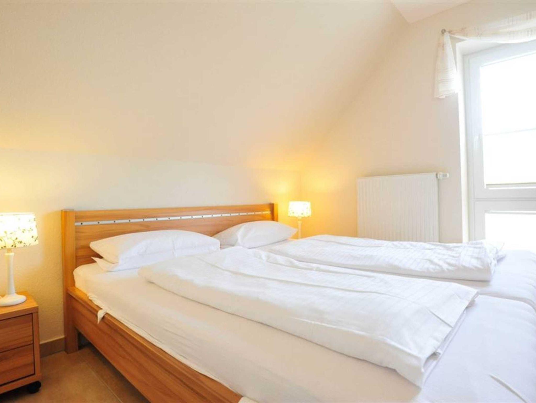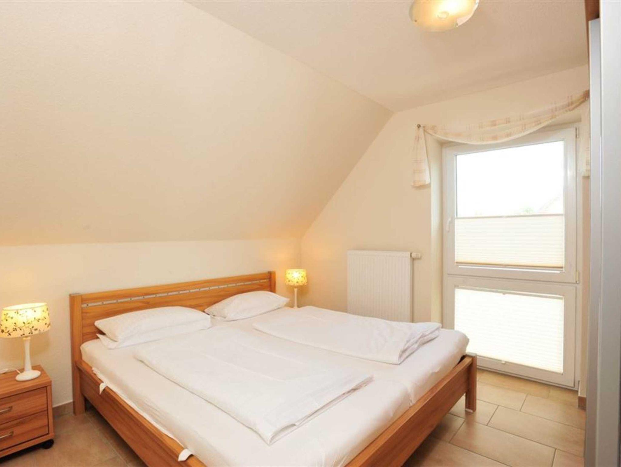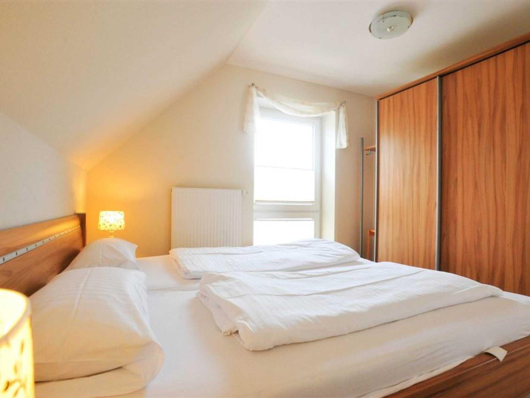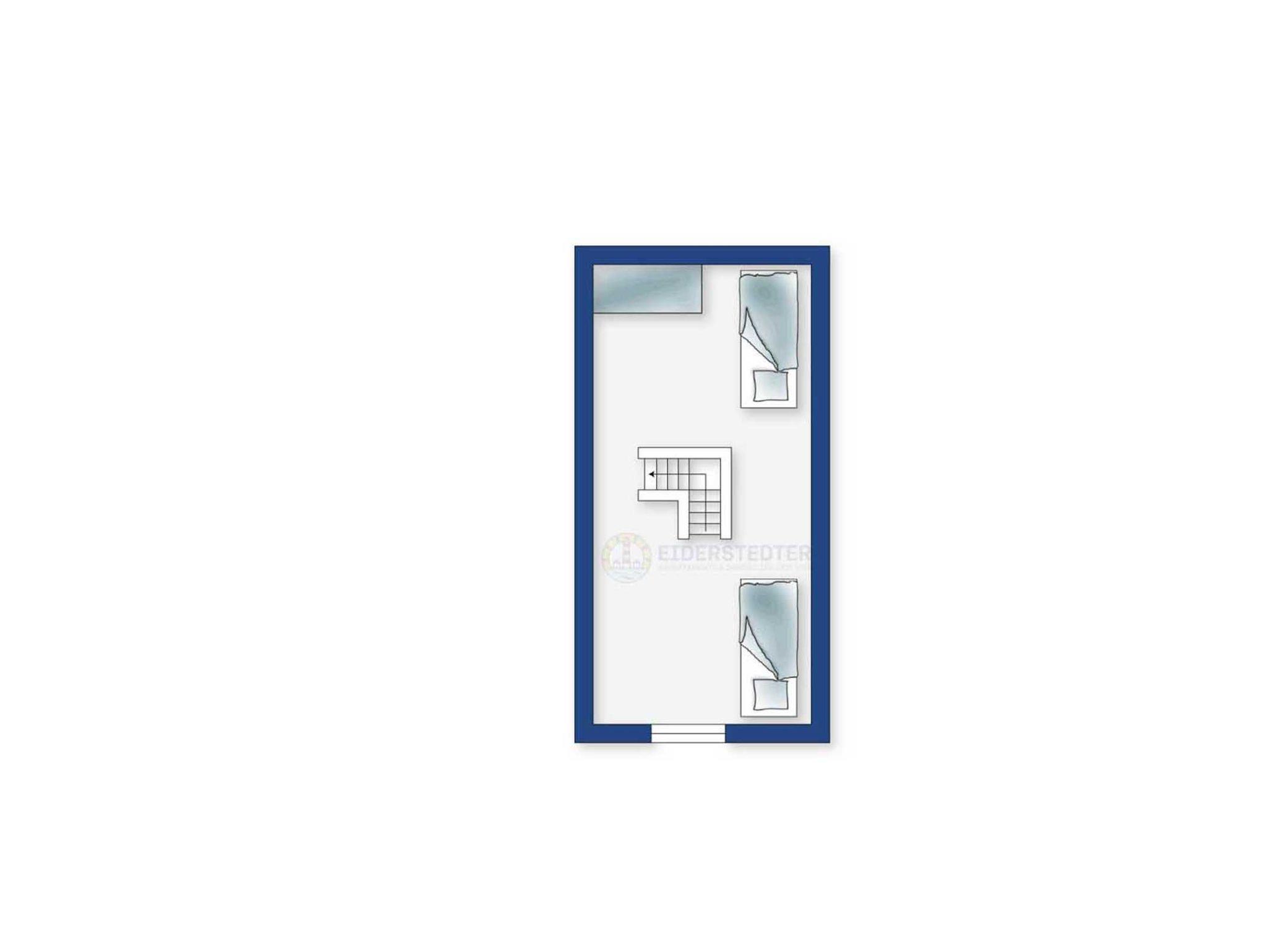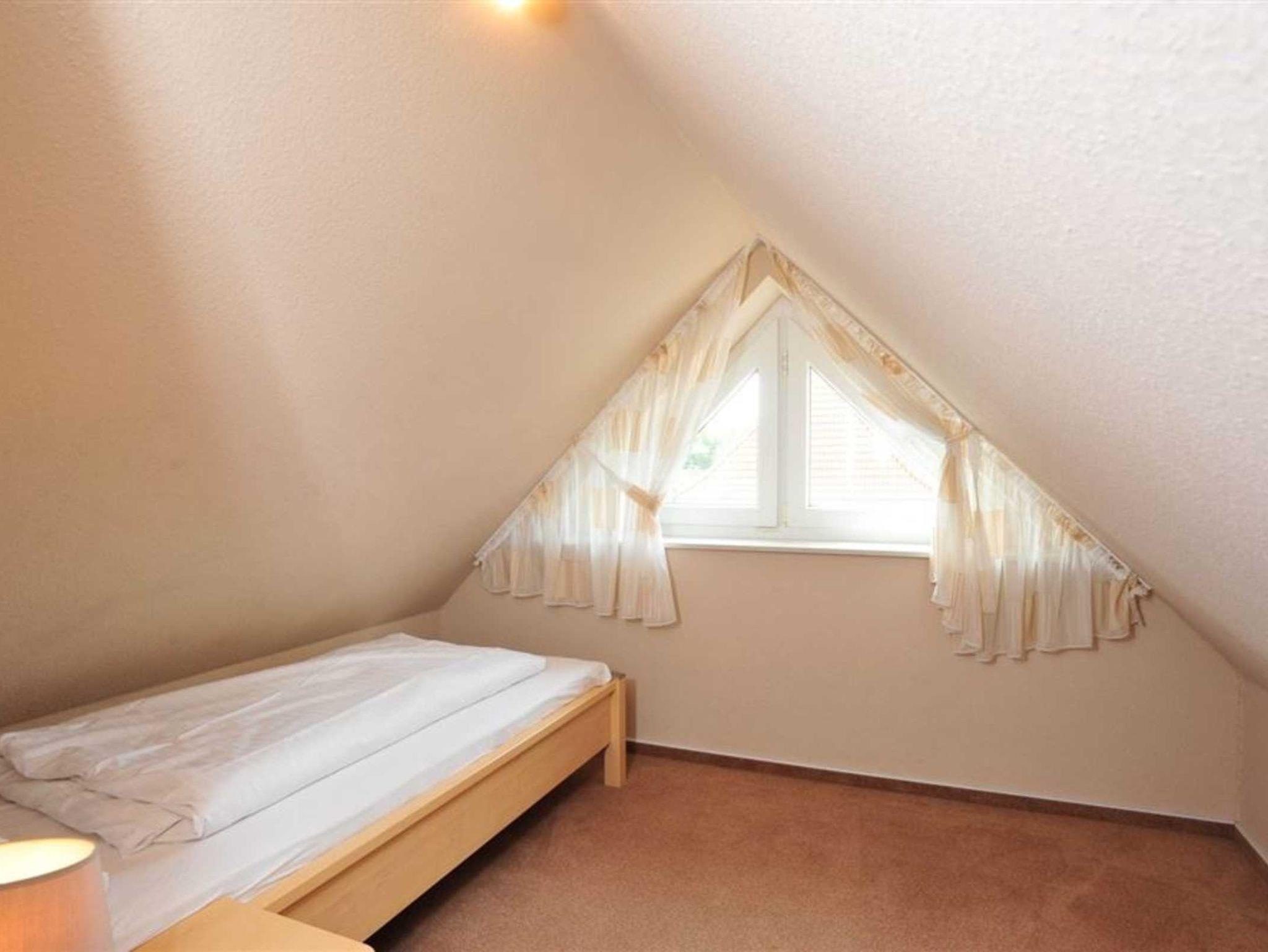 2. Schlafzimmer mit 2 Einzelbetten (je 90x200cm) und Kommode. Dieses Zimmer eignet sich wegen der niedrigen Deckenhöhe nur für Kinder. Zugang über enge, schmale Treppe.