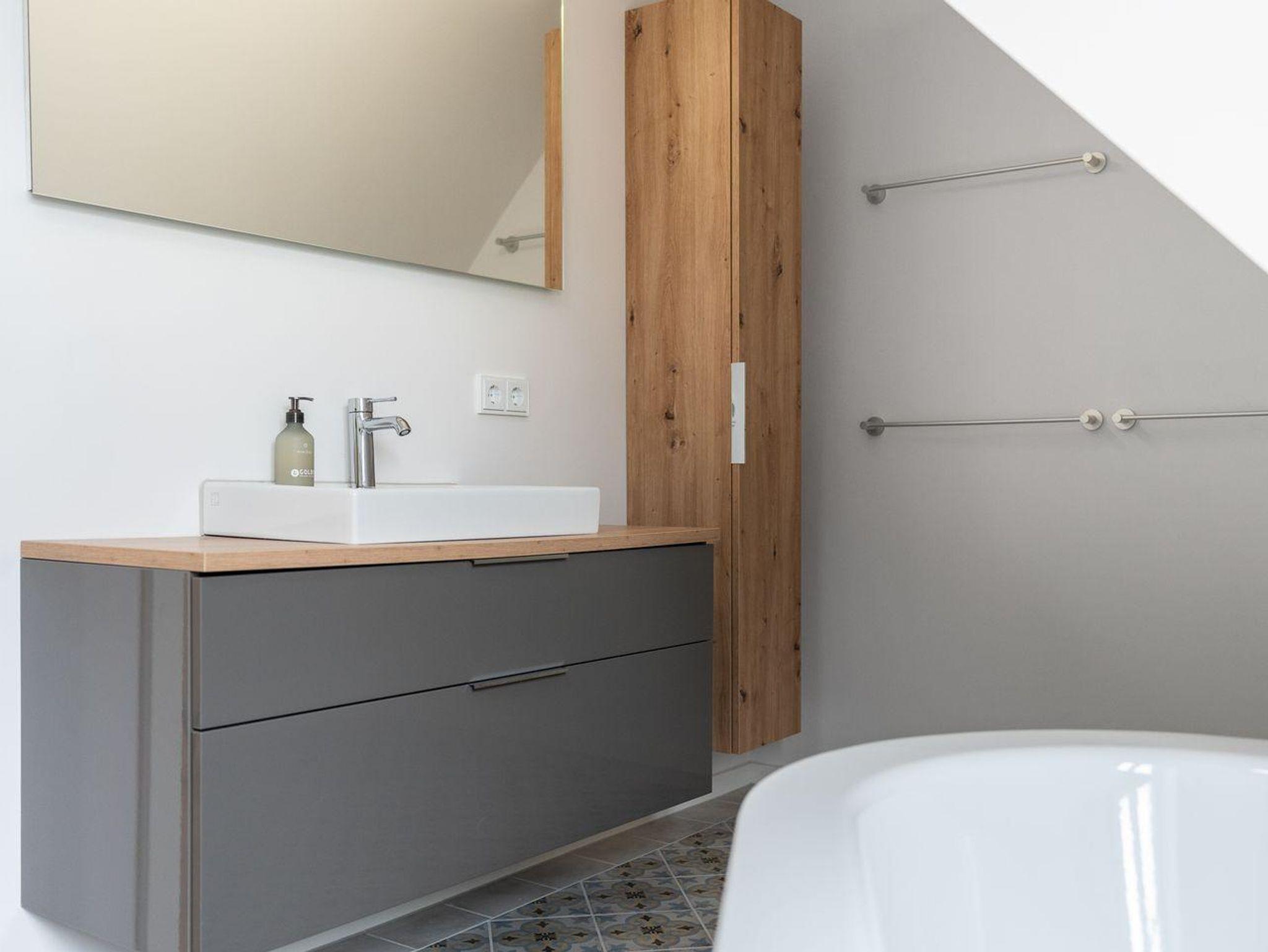 Die stilvoll Schlafzimmer mit Boxspingbetten bieten Komfort und genügend Stauraum für Ihr Gepäck. Ein Schlafzimmer verfügt über ein gemütliches Doppelbett (1,80 x 2,00), während im anderen Zimmer weitere Schlafmöglichkeiten (1,40 x 2,00) zur Verfügung stehen. Die Badezimmer mit Dusche und Badewanne bieten optimalen Komfort.