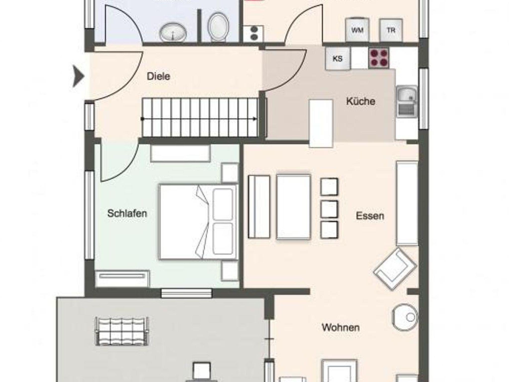 Dieses wunderschöne Ferienhaus verfügt über ca. 125 m² Wohnfläche und bietet großzügigen Platz für 7 Personen. Im Erdgeschoss befindet sich der lichtdurchflutete Wohnraum mit TV, Kamin, einer offenen Wohnküche sowie einem stilvollen Essbereich. Die Wohnräume sind mit exklusiven Möbeln ausgestattet. Die Küche verfügt über hochwertige Elektrogeräte und genügend Platz zum gemeinsamen Kochen. An den Wohnbereich schließen sich ein Flur, sowie ein großzügiger Hauswirtschaftsraum. Ebenso ist im Erdgeschoss ein geräumiges Doppelschlafzimmer und ein Vollbad mit Badewanne und Dusche. Das gesamte Erdgeschoss verfügt über geschmackvolle Fußbodenfliesen und tollen Wandfarben.