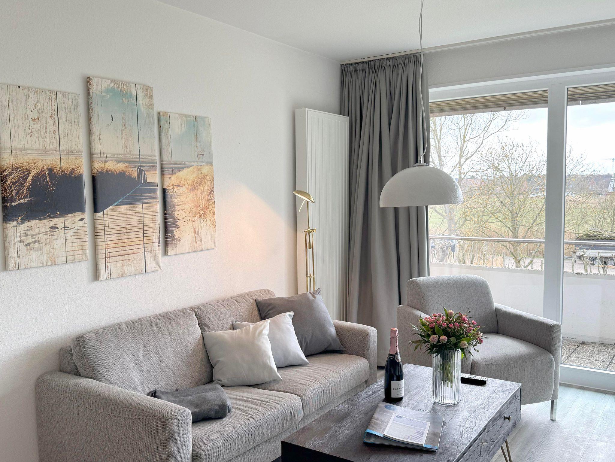 Helle, freundliche und strandnahe Ferienwohnung in St. Peter-Ording im Obergeschoss mit großer Südloggia für 2-3 Personen, ruhig und strandnah