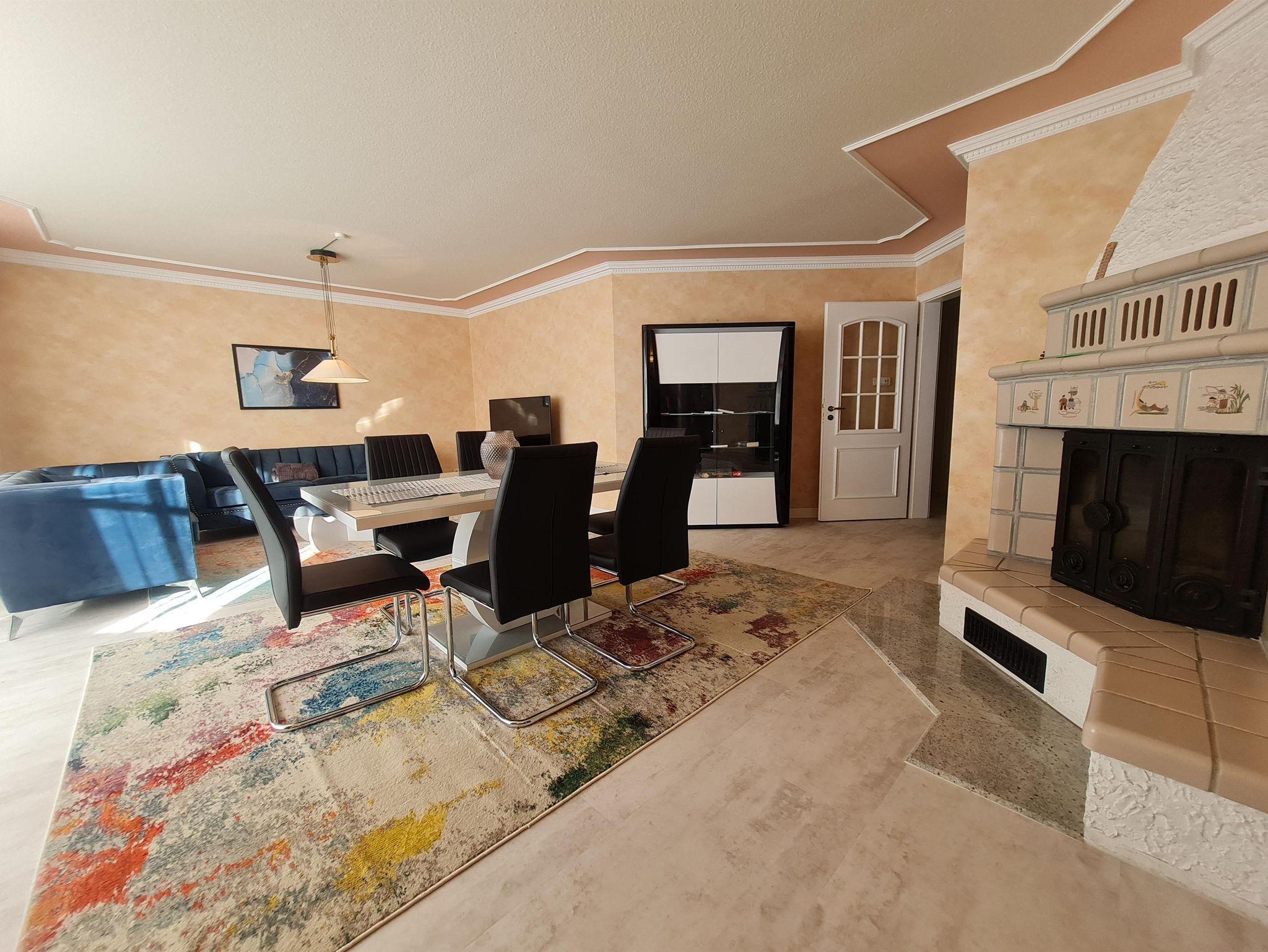 • Einen offenen und modernen Wohnbereich mit Kamin, der gemütliche Abende garantiert.