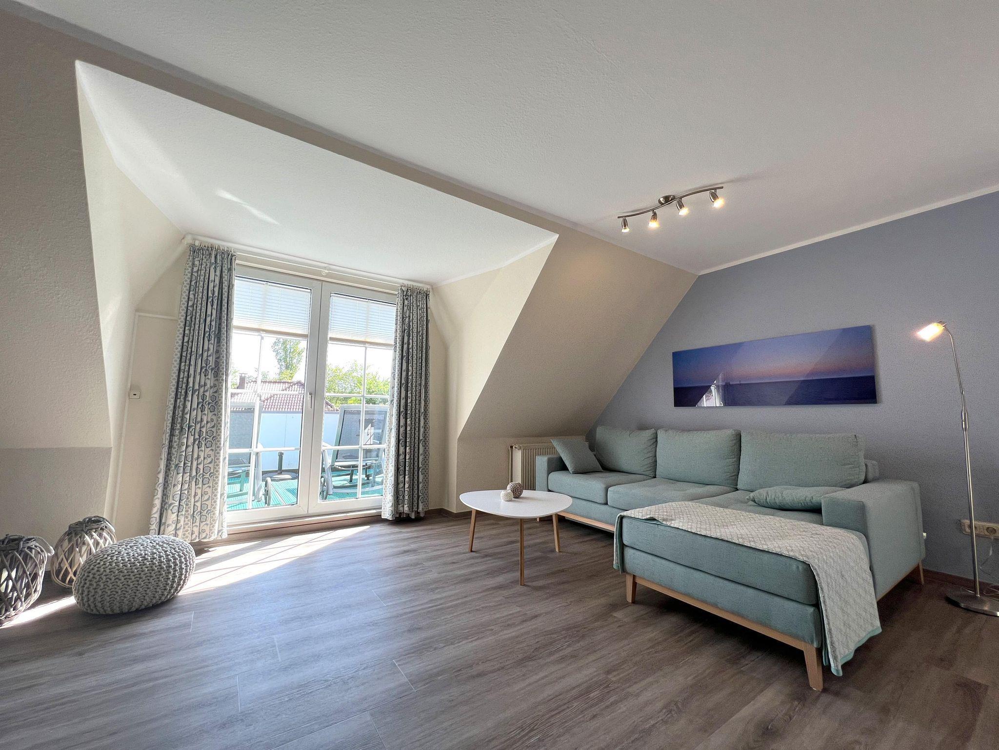 Die freundlich eingerichtete 3-Zimmer-Ferienwohnung Theo-Luise Nr. 03 liegt im 1. OG und im DG. Die Maisonette-Wohnung ist gut ausgestattet. Die offene Küchenzeile ist u.a. mit einem 4-Plattenherd, Backofen und Spülmaschine ausgerüstet. Ausreichend Schlafplatz finden Sie in den 2 Schlafzimmern, eines mit Doppelbett, das andere mit 2 Einzelbetten. Auch auf dem Süd-West-Balkon können Sie die gute Nordseeluft genießen.