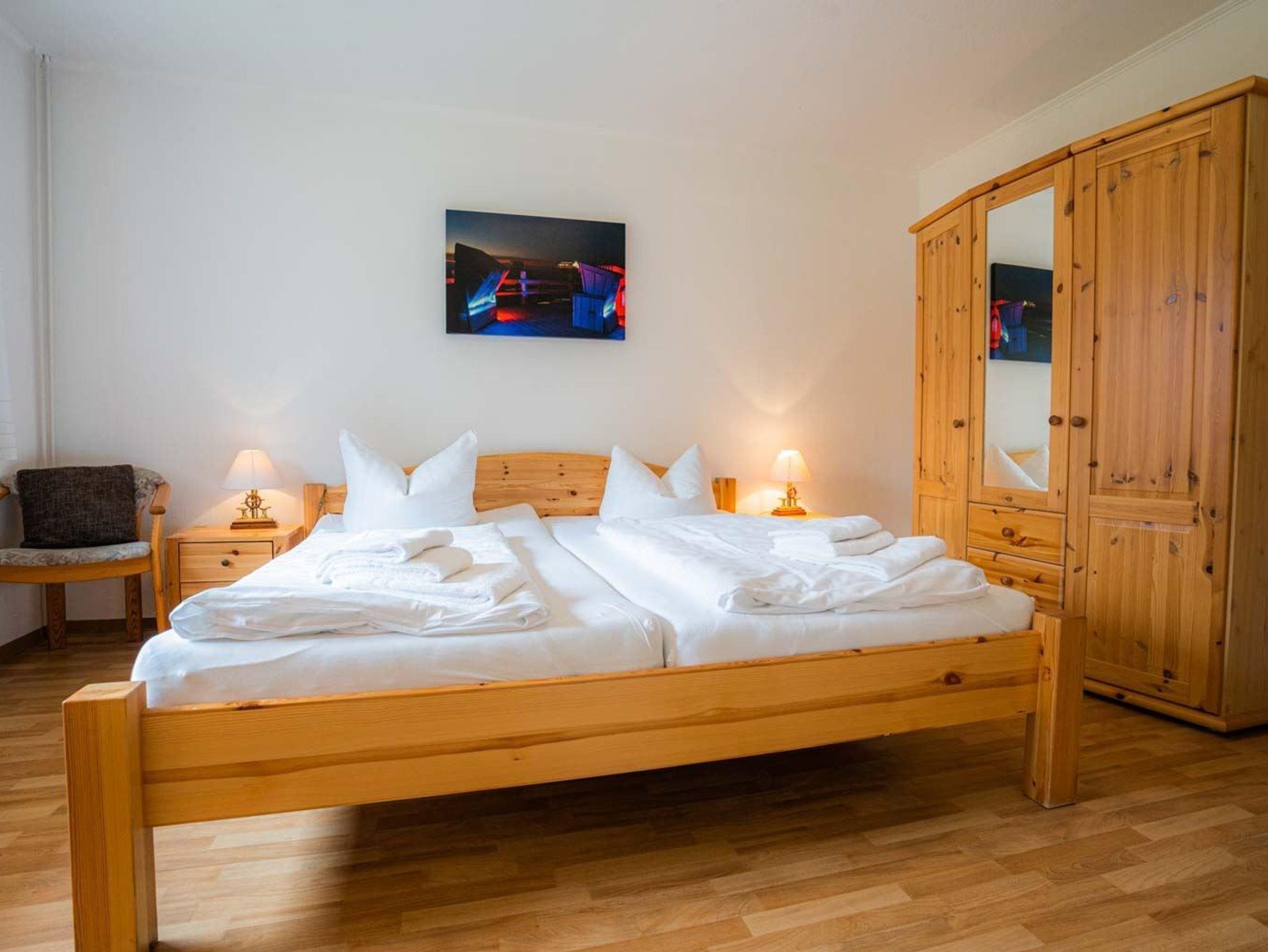 Schlafzimmer mit Doppelbett (2x 100x200cm, ein Lattenrost ist elektrisch verstellbar), 2 Sesseln und Kleiderschrank.