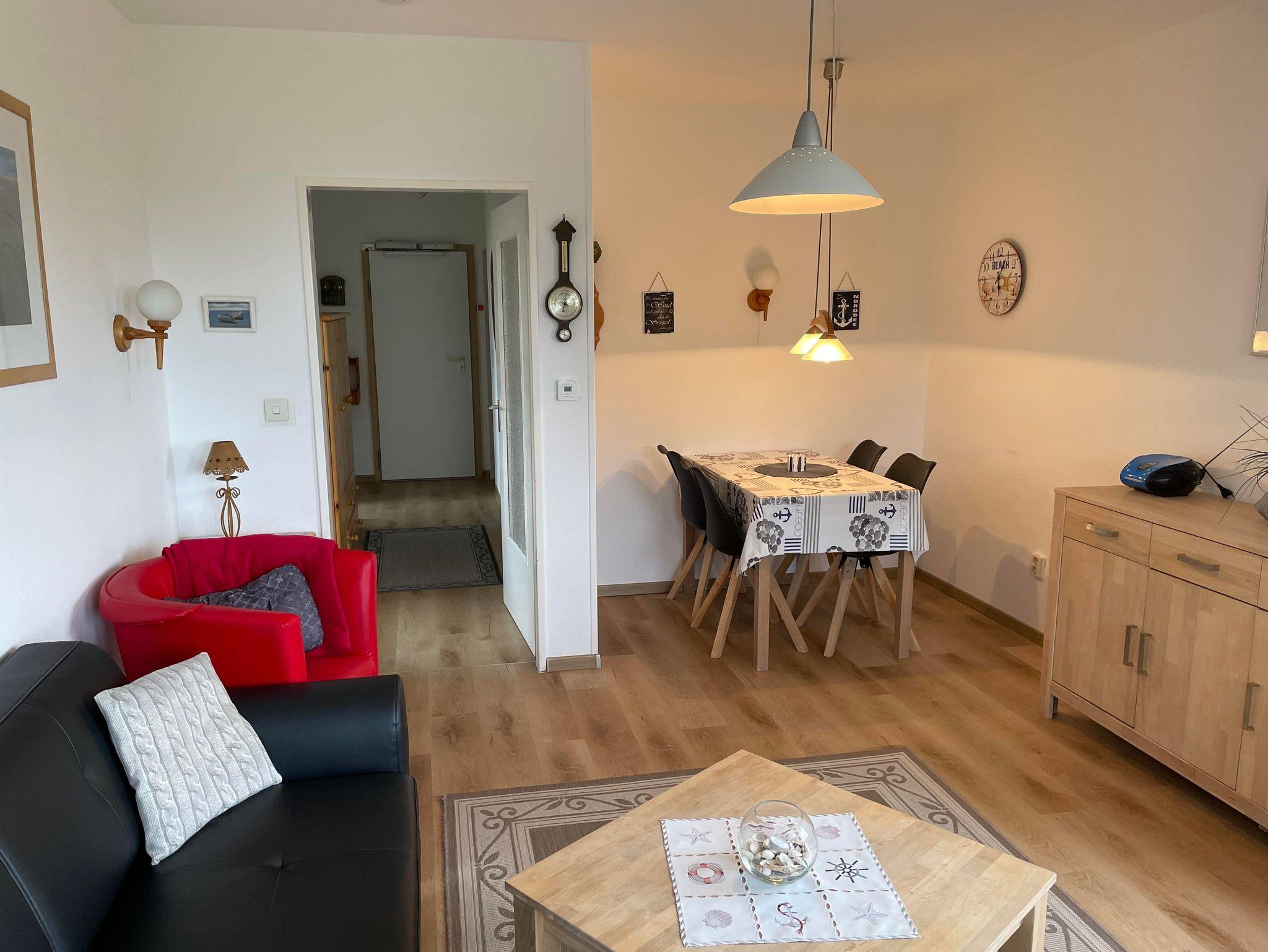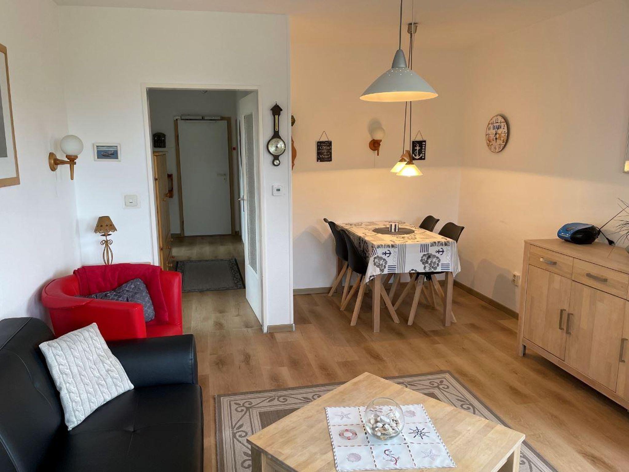 Die Wohnung (55 qm) ist in einer ruhigen Sackgasse direkt hinter Deich und Kurpromenade neben der Strandklinik gelegen und bietet 1-4 Personen Platz. Aufgeteilt ist die Wohnung in 2 Schlafzimmer mit je 2 Einzelbetten (2m Länge), 1 Wohnzimmer mit Eßecke (Radio, Sat-Farb-TV), Balkon mit etwas Meerblick (Bad-Strand und seitlich auf den Priel), separate Küche (E-Herd, Backofen, Mikrowelle, Kaffeemaschine, Toaster, Wasserkocher, Allesschneider, Kühlschrank mit Gefrierfach etc.), Dusche und WC (getrennte Räume), Abstellraum. WLAN steht in der Wohnung kostenlos zur Verfügung, jedoch sind hier leider hin und wieder Störungen möglich.