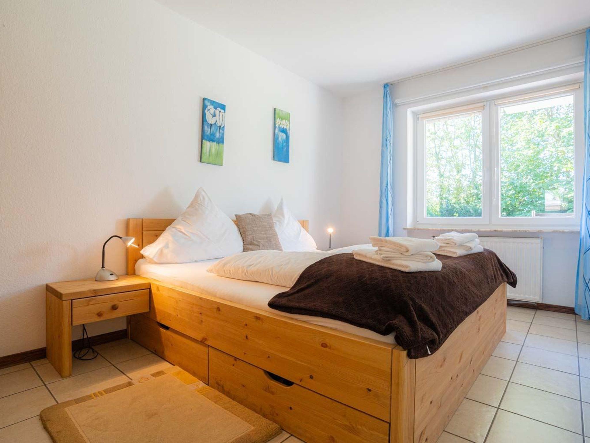 1. Schlafzimmer mit Doppelbett (2x 90x200cm), Kleiderschrank und 2 Stühlen.