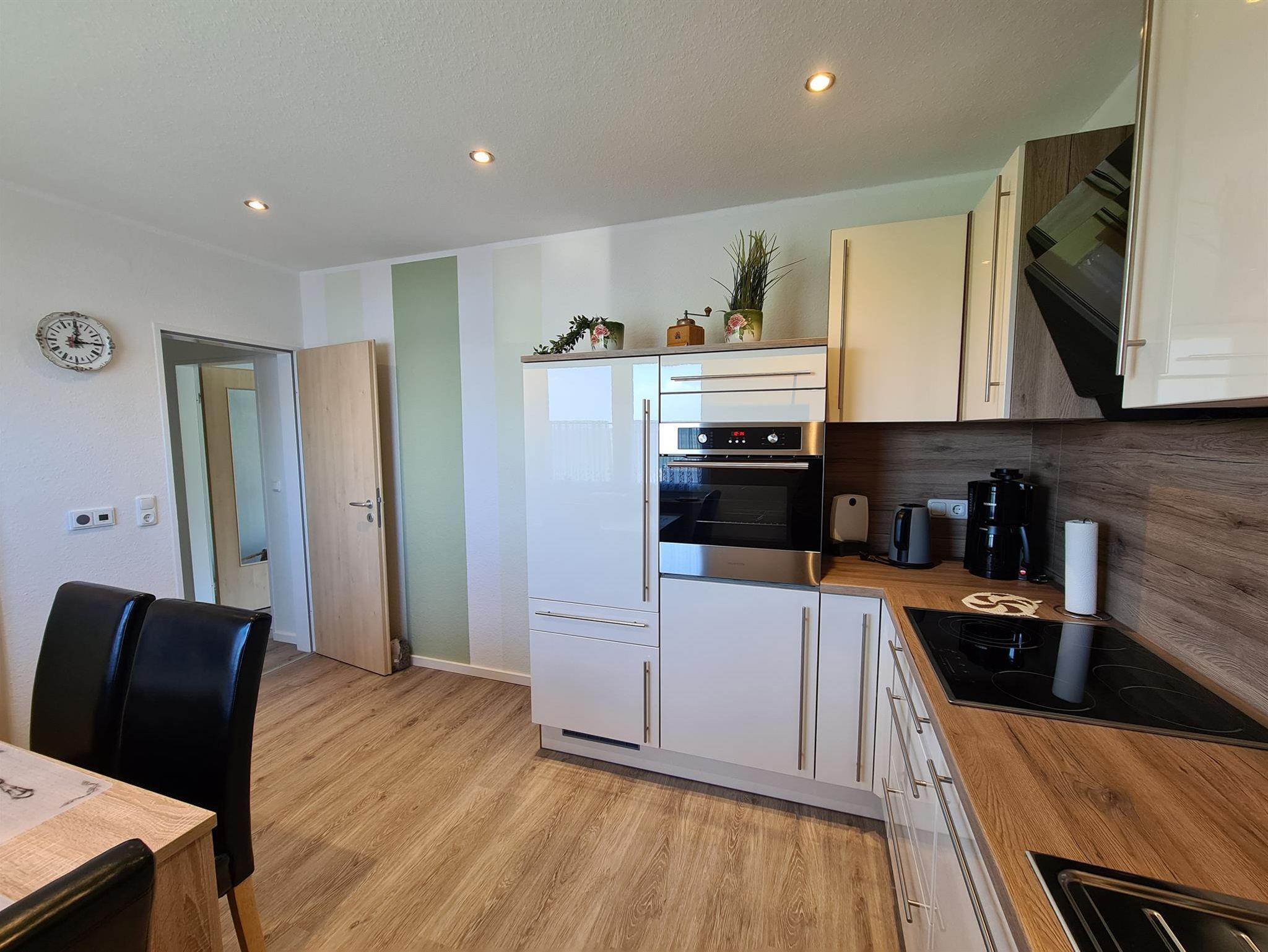 moderne, neue und separate Küche mit Backofen, Geschirrspüler, Ceranfeld und Essbereich