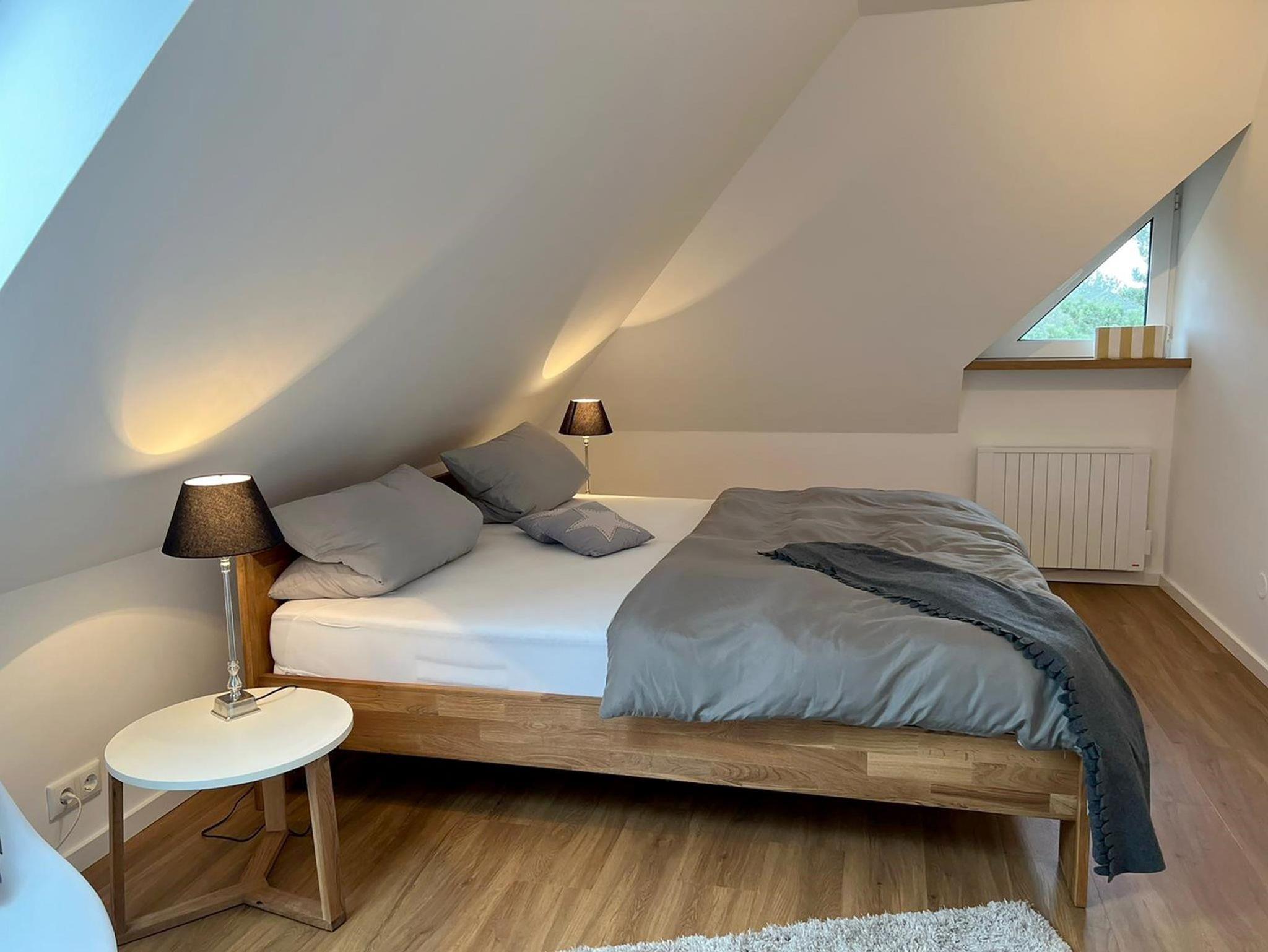 Die großzügige und freundlich eingerichtete 3-Zimmer-Wohnung Haus Sturmhaube Nr. 05 bietet über 2 Etagen Urlaubs-Platz für bis zu 4 Gästen. Die Schrägen im Dachgeschoss geben den zwei Schlafräumen eine gemütliche Atmosphäre. Ein Doppelbett und 2 Einzelbetten ermöglichen Ihnen hier wohligen Schlaf. Der Balkon in Süd-Westlage bietet einen Ausblick über die umliegende Natur. Im Bad stehen Ihnen eine Waschmaschine und ein Trockner zur Verfügung. Zudem sind bei dieser Wohnung Internetzugang und eine Garage inklusive.