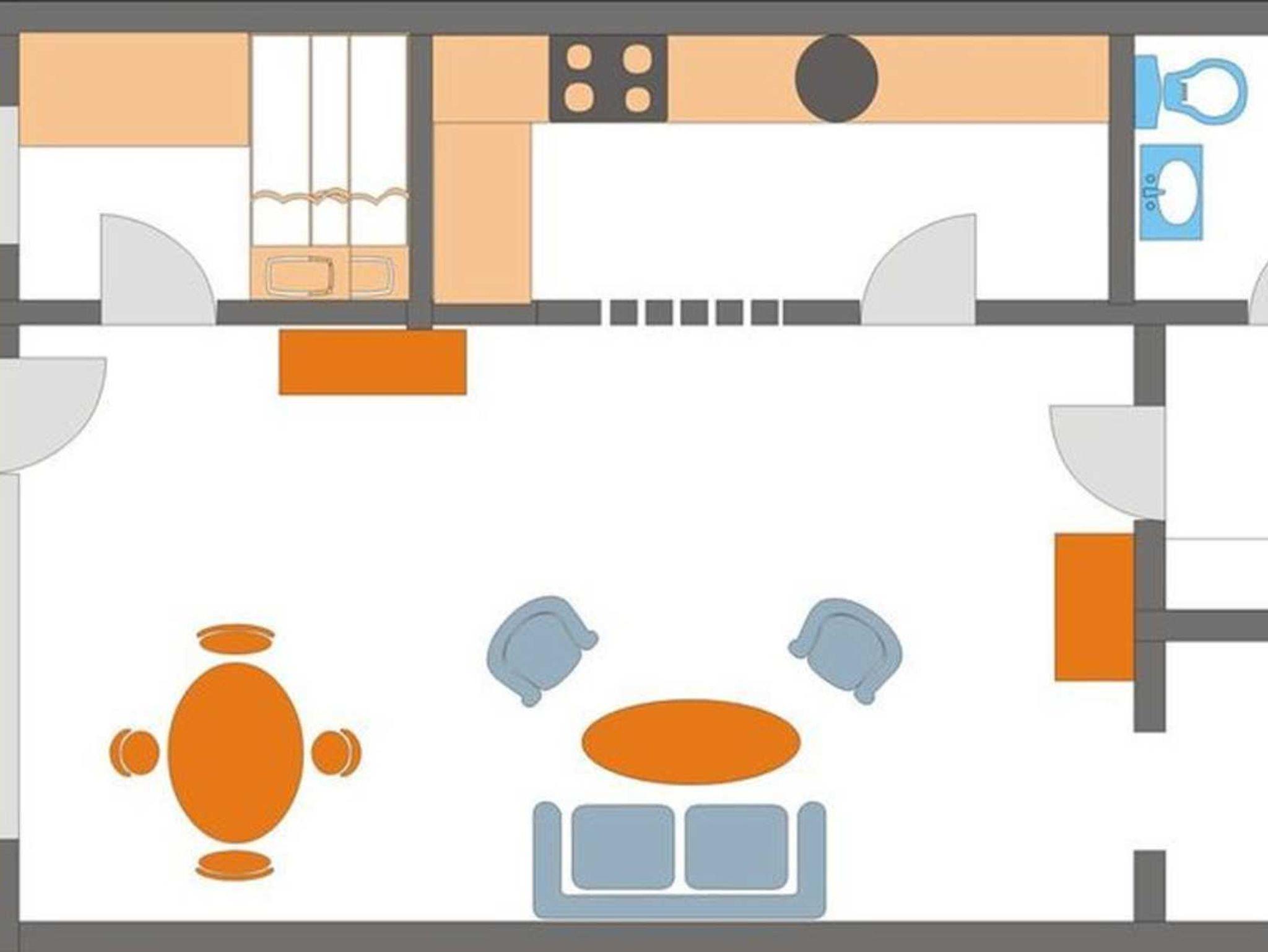 1. Schlafzimmer mit 2 Einzelbetten (je 90x190cm). Dieses Schlafzimmer ist durch einen Vorhang vom Wohnzimmer abgeteilt.