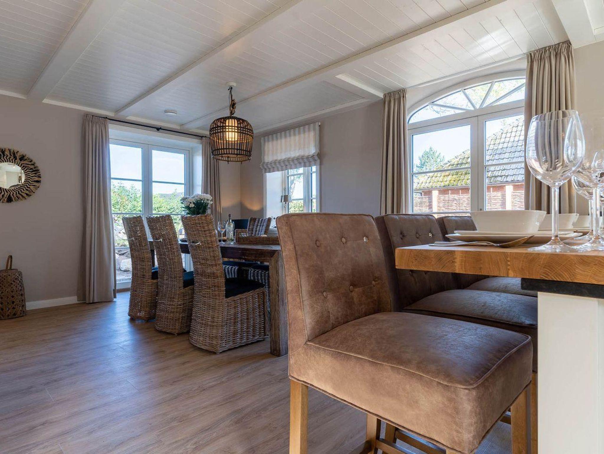 Das Grundstück mit Stellplatz, Rasenfläche und zwei sonnigen Terrassen- einer Frühstücksterrasse und einer Abendterrasse - ist mit Pflanzen aus der Region angelegt. Der Garten ist eingezäunt. Für die Sicherheit Ihrer Fahrräder gibt es ein kleines Fahrradhäuschen, so dass ungetrübten Urlaubstagen nichts im Wege steht. Zudem besticht das Haus durch die einzigartige Lage, denn in nur wenigen Minuten gelangt man zu Fuß zu vielen Lebensmittelgeschäften und in das Dorfzentrum des Ortsteils Dorf. Das Grundstück liegt in einer Sackgasse, so dass nur wenig Autoverkehr Ihren erholsamen Urlaub beeinträchtigt. Dieses liebevolle und individuelle Haus lässt keine Wünsche offen und garantiert Ihnen von der ersten Minute an einen unvergleichlichen Urlaub an der Nordseeküste.