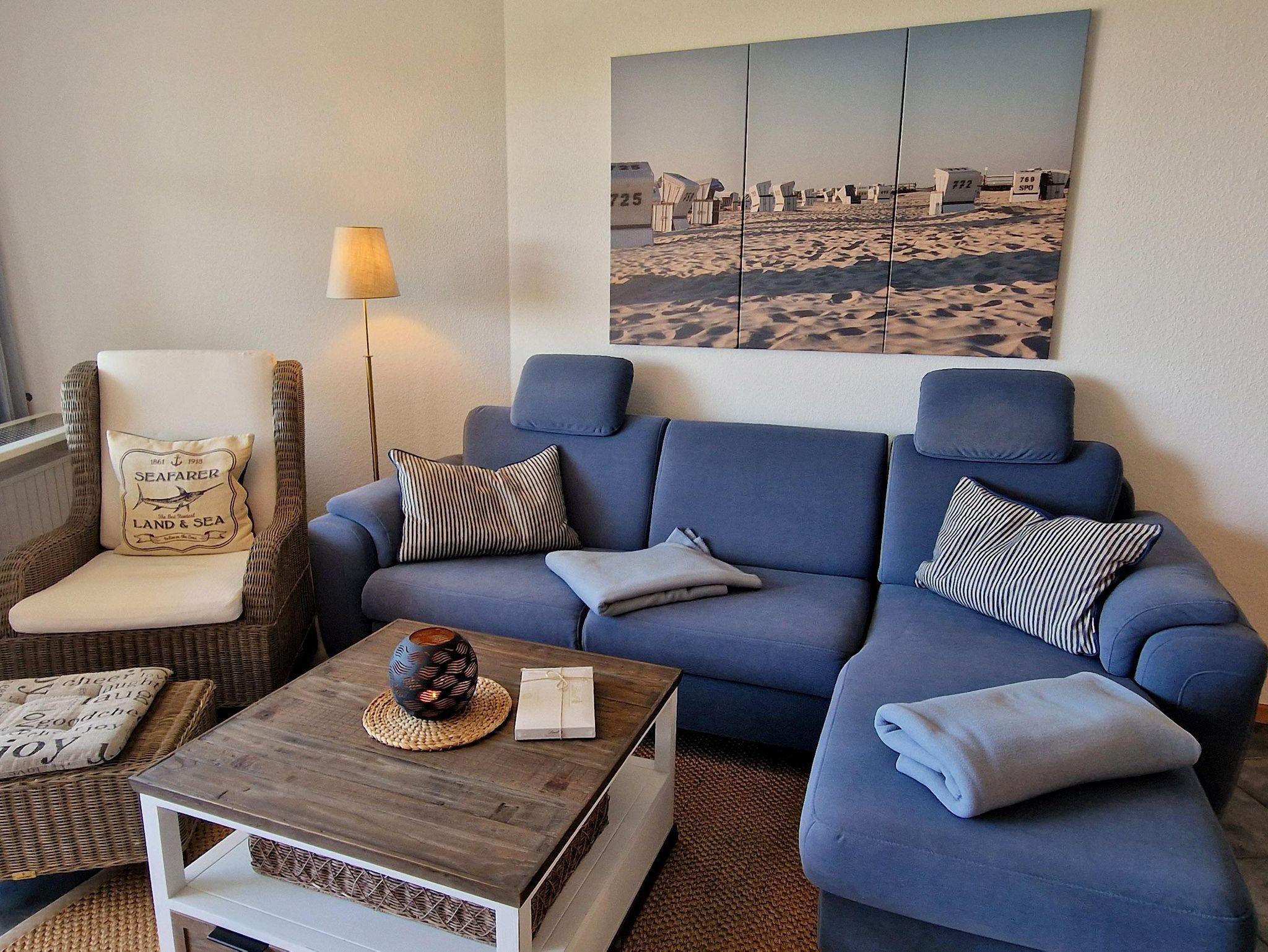 In bester Lage direkt an der Strandpromenade erwartet Sie eine hochwertige und gemütliche 2-Zimmer Ferienwohnung im maritimen Stil mit liebevoll ausgesuchter Ausstattung für Urlaubsgefühl pur am Meer. Eine Landhausküche, ein schickes Bad mit Elektroheizung und ein gemütliches Schlafzimmer mit Doppelbett lassen keine Wünsche offen. Vom überdachten Balkon mit Mobiliar geniessen Sie eine herrlichen Blick über die Salzwiesen bis zum Meer.