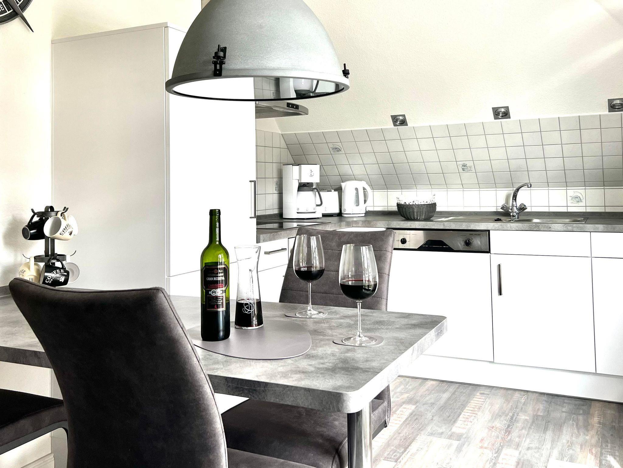Maritime Entspannung in der 2-Zimmer-Ferienwohnung Haus Lobster Nr. 07 für 1-2 Personen. Auf dem Süd-Ost-Balkon im 2. OG können Sie die Seele baumeln lassen. Gemütlichkeit erlangt diese Wohnung nicht nur durch das großzügige Schlafzimmer und ein hübsches Bad, sondern insbesondere durch die Lage unterm Dach und die Schrägen. Ein weiterer Pluspunkt ist die moderne Küchenzeile mit Cerankochfeld und Backofen.