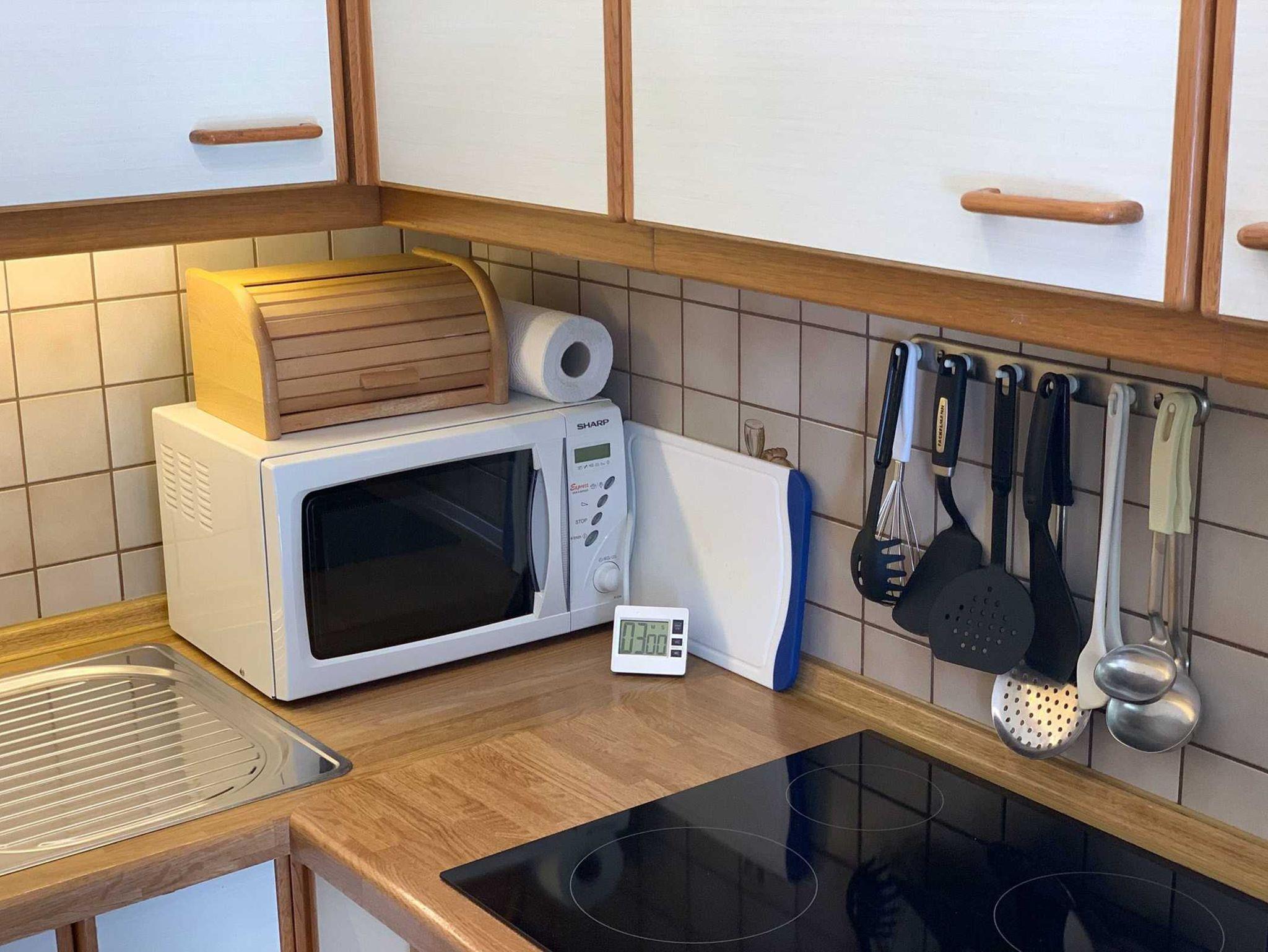 Gut ausgestattete Küche: Bereiten Sie leckere Mahlzeiten in der gut eingerichteten Küche zu, die Ihnen alle notwendigen Utensilien bietet.