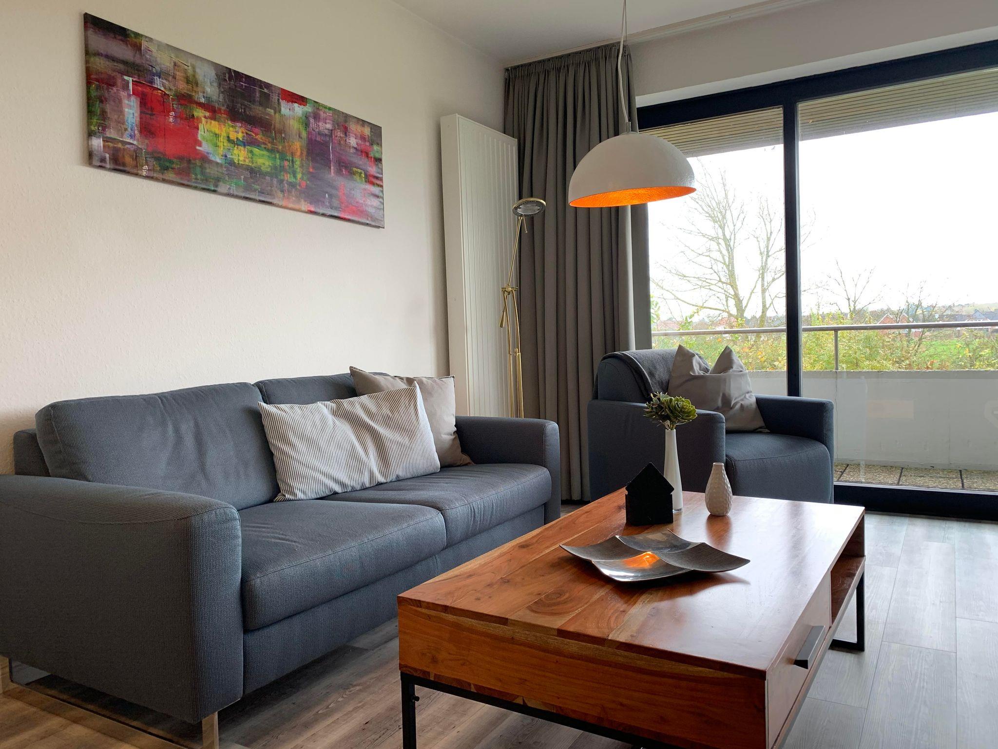 Helle, freundliche und strandnahe Ferienwohnung in St. Peter-Ording im Obergeschoss mit großer Südloggia für 2-3 Personen, ruhig und strandnah