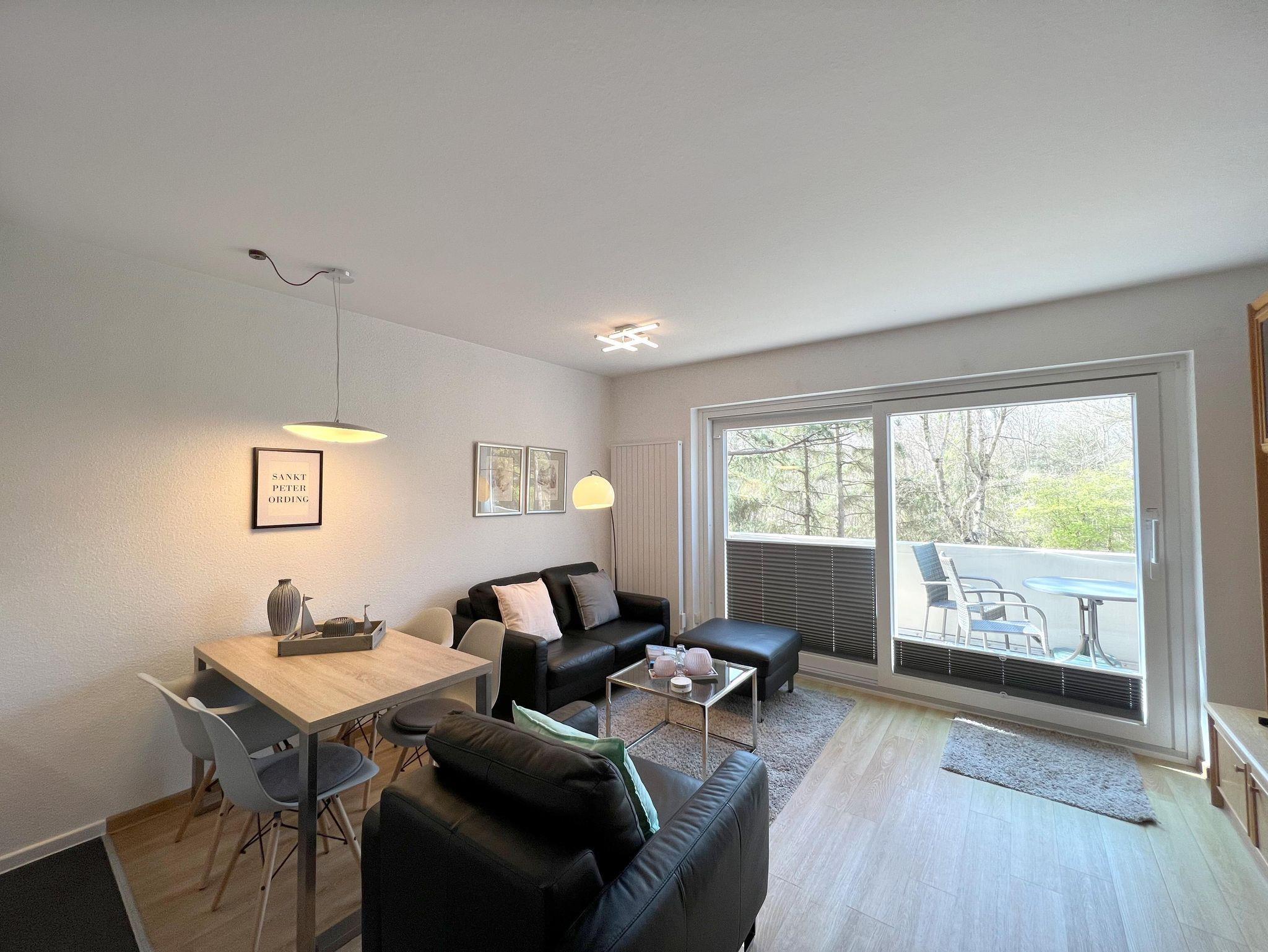 Eine herrliche Couch und 2 bequeme Sessel laden Sie zum Verweilen in der 2-Zimmer-Ferienwohnung Haus Königsfriesen Nr. 07 ein. Die Wohnung im 1. Stock besitzt eine gut ausgestattete Küchenzeile mit 4-Plattenherd und Backofen. Schlaf finden Sie mit bis zu 4 Personen in den 2 Einzelbetten im Schlafzimmer und im Schrankdoppelbett im Wohnzimmer. Ein schöner Balkon in südwestlicher Ausrichtung wartet auf Sie!