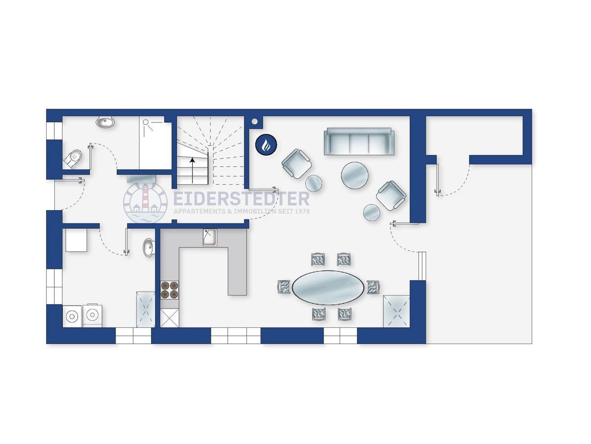 Exklusive Ferienhaushälfte Billerbook unter Reet mit 4 Zimmern und ca. 120 m² auf 3 Ebenen für bis zu 6 Personen (Wohlfühlbelegung: 4 Erwachsene). Ruhige Lage im Ortsteil Stilles Dorf in St. Peter-Ording, nur wenige Gehminuten zur Dorfstraße und zum Nordseedeich.