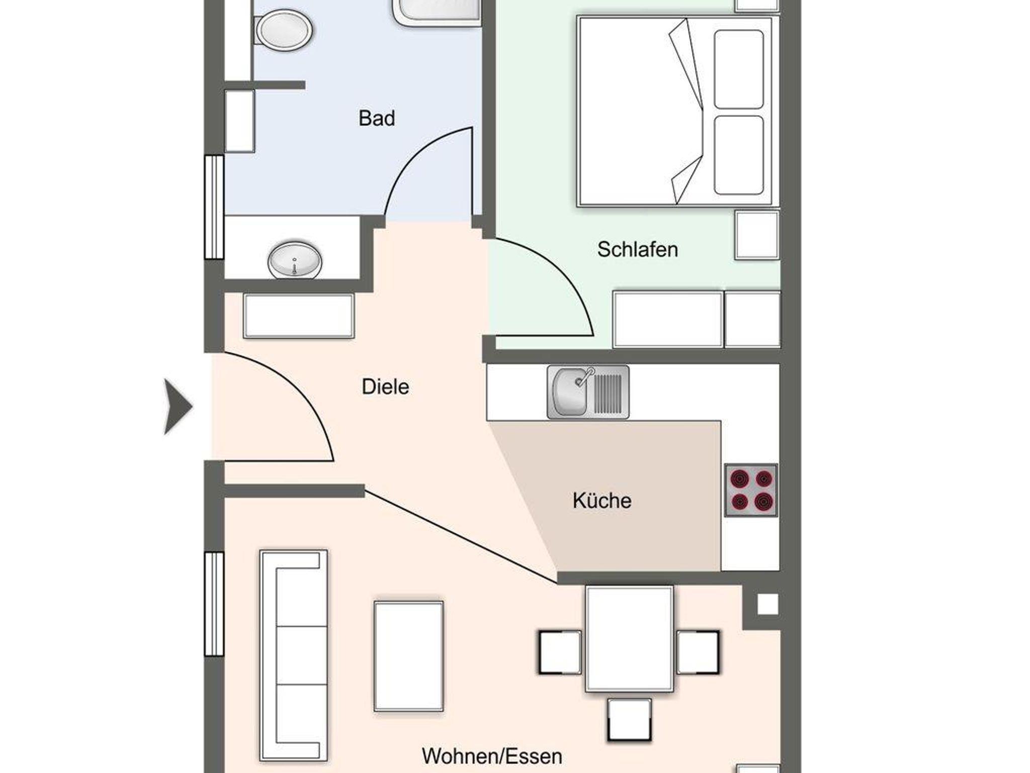 Die moderne und gemütliche Ferienwohnung liegt im Erdgeschoss und ist vom eigenen PKW-Parkplatz, welcher sich direkt vor dem Haus befindet, zu erreichen.