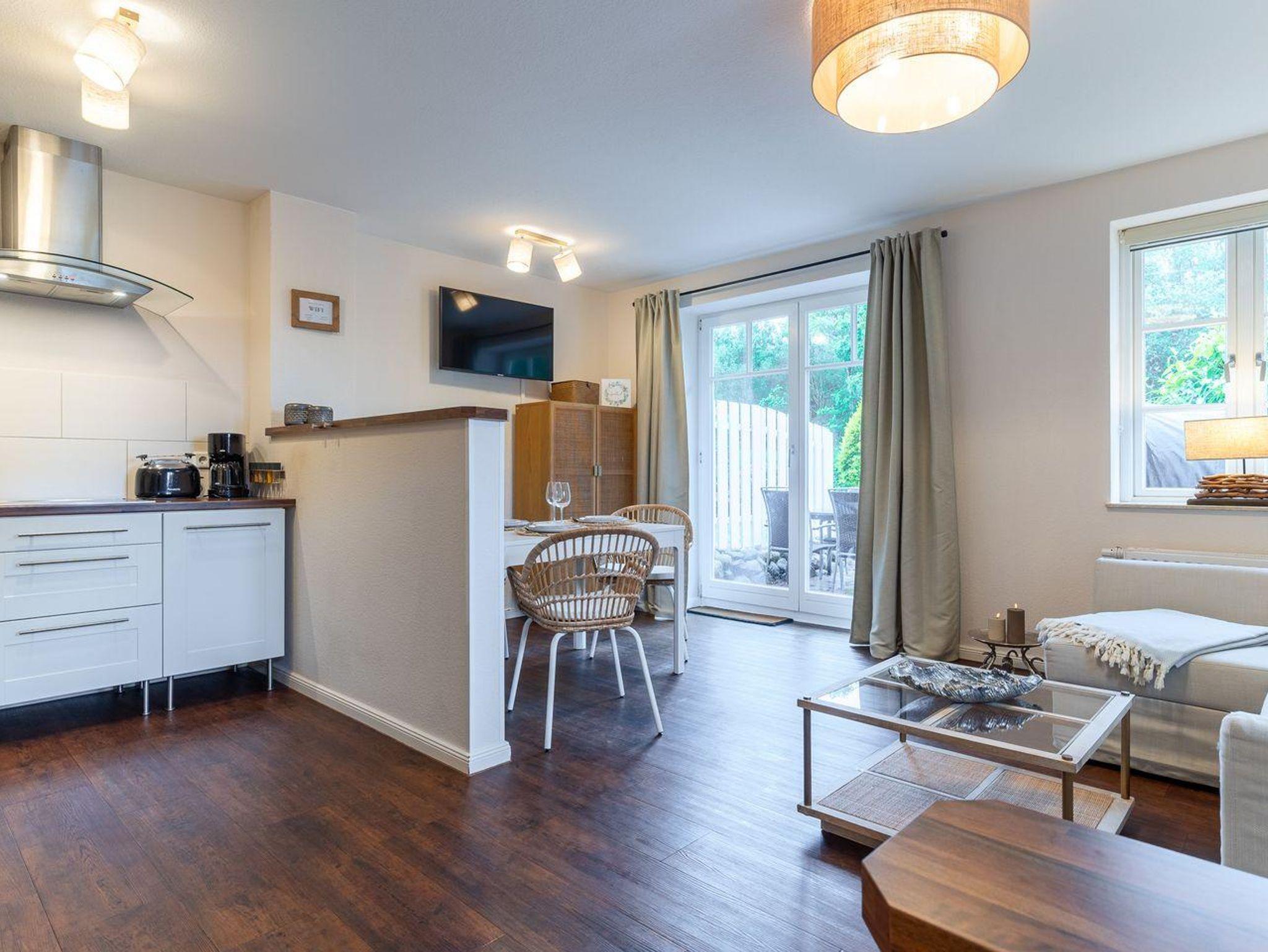 Mit Aussicht auf die eigene Terrasse mit Süd- Westlage, einer Rasenflächen und Ihrem Strandkorb können Sie die Zeit in als auch außerhalb der Wohnung genießen.