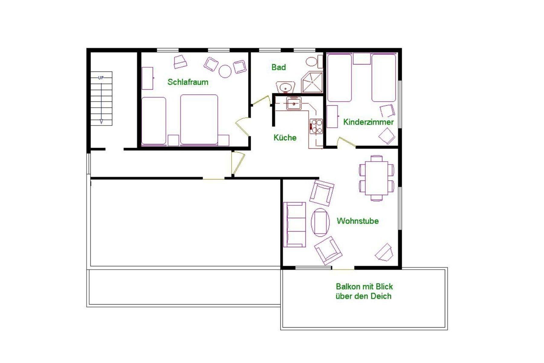 Es erwartet Sie eine gemütliche Nichtraucher Ferienwohnung mit Platz für bis zu 4 Personen. Die Ferienwohnung ist ideal geschnitten mit großzügiger Wohnküche. Im Wohnbereich erwartet Sie ein bequemes Sofa und zwei Sessel. Sie gelangen vom Wohnbereich direkt auf den Balkon, die großen Fenster verleihen dem Raum viel Licht und ein wohliges zuhause Gefühl. Des Weiteren gibt es einen Flatscreen und eine Essecke für bis zu vier Personen. Unsere moderne Küchenzeile ist mit allem, was Sie für ein zauberhaftes Gericht benötigen ausgestattet.