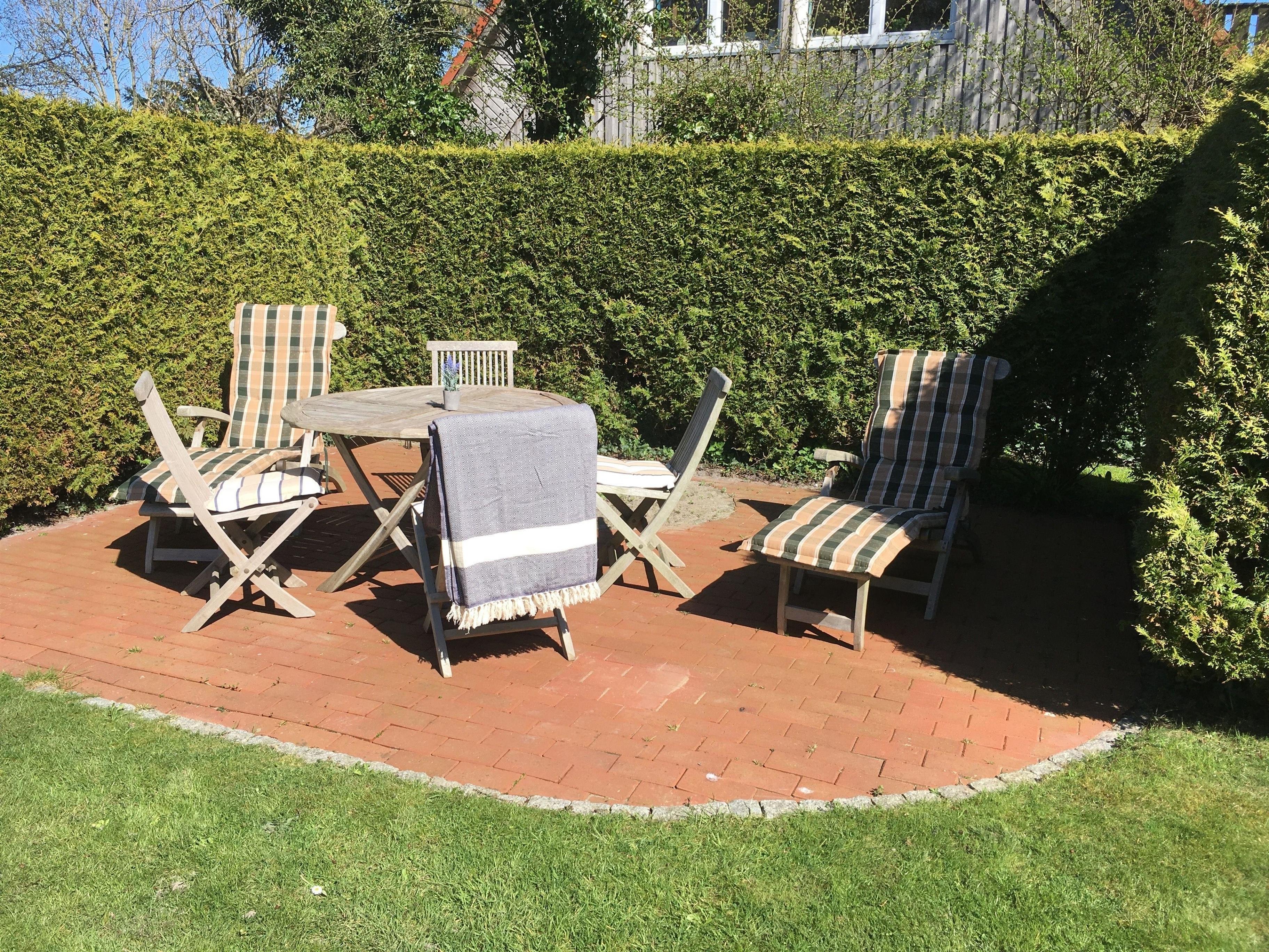eigener Parkplatz, eigene Terrasse mit Teakmöbeln, Deckchairs