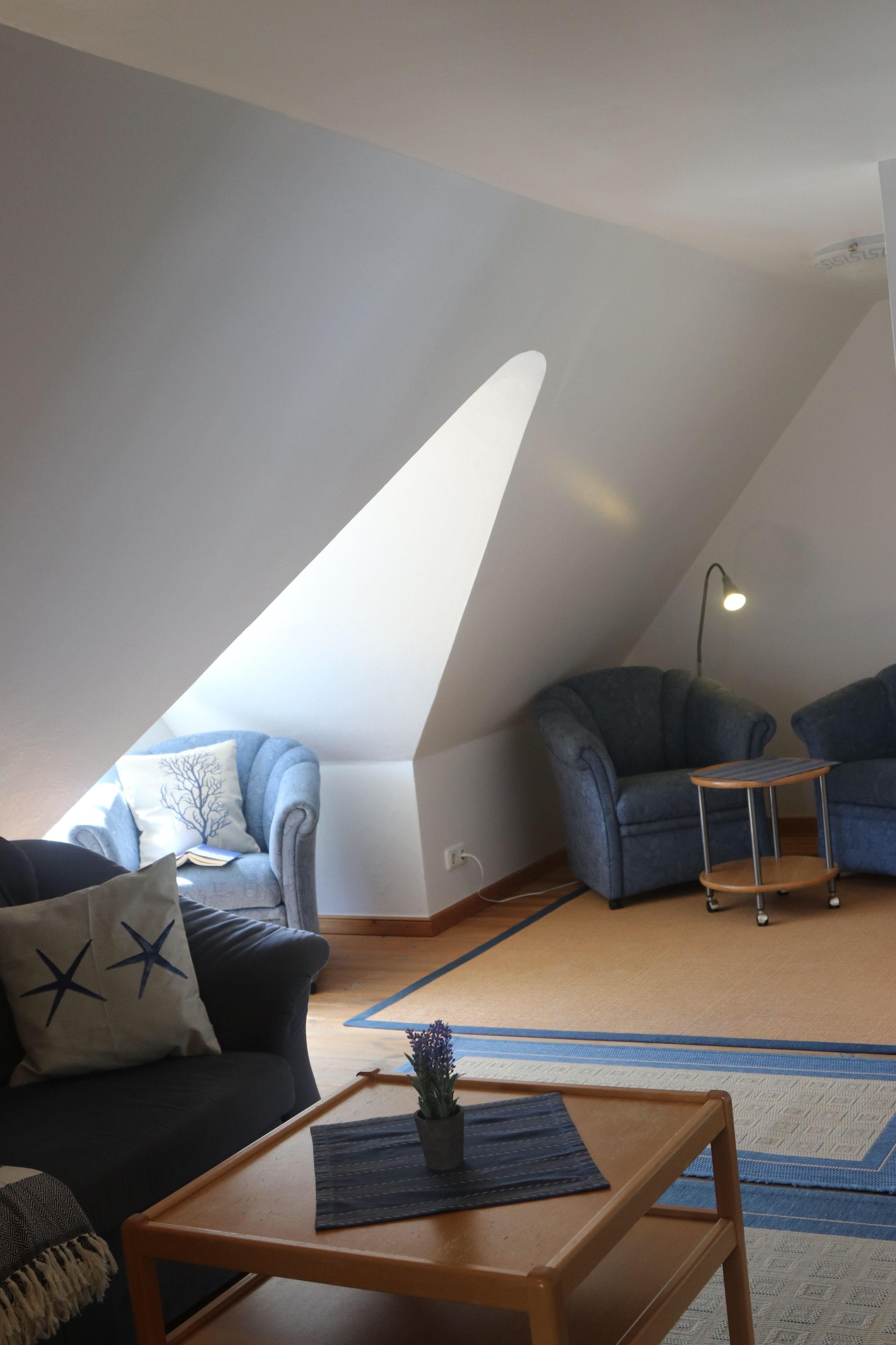 Unser Appartement 2 im Obergeschoss bietet auf 65 qm viel komfort: in der gemütlichen Wohnküche unserers Appartements finden Sie eine Komplettausstattung incl. Backofen, Geschirrspüler und Mikrowelle. Das Appartement hat zwei Schlafzimmer mit grossen Einbauschränken. Im Wohnzimmer gibt es neben dem Fernsehbereich auch eine gemütliche Leseecke am Dachfenster.